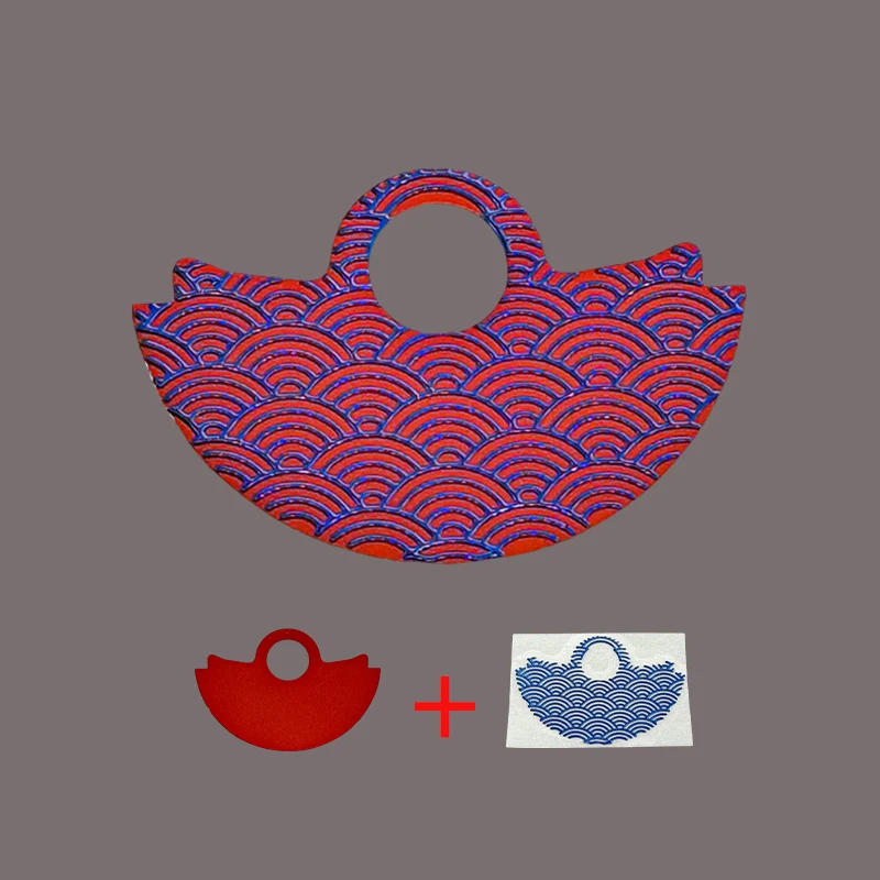 - Features an intricate, Japanese-inspired scallop pattern with red and light blue wavy lines, offering a unique, artistic aesthetic for movement decoration.