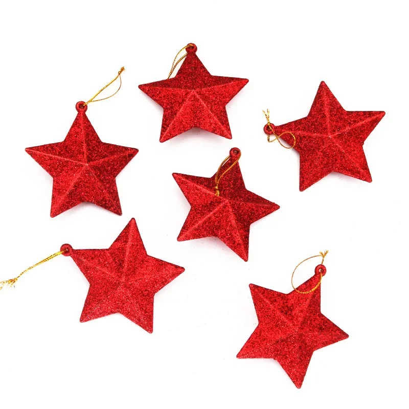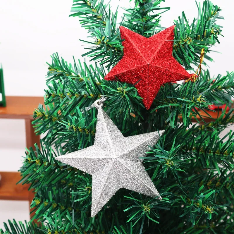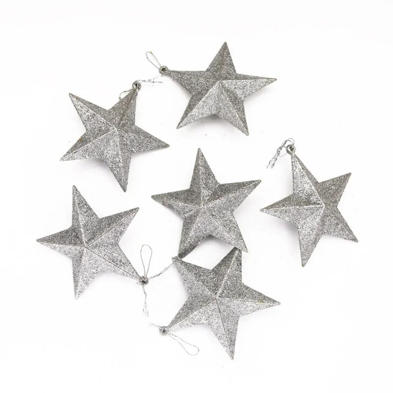 Enhance your celebration ambiance effortlessly with this set of six decorative hanging star ornaments. Crafted from high-quality plastic, each star measures about 5×5 centimeters, providing a perfect size for versatile decorating. The set features stunning silver and gold glitter stars that shimmer with luminous sparkle, alongside vibrant red and multicolored stars to inject lively color into any space. With their classic five-point design and glittery surface, these ornaments catch the light beautifully, creating a bright, festive atmosphere. Hang them on Christmas trees, ceilings, doorways, or as party accents—these stars are sure to bring joy, warmth, and sparkle to your special occasions, making your décor truly memorable.