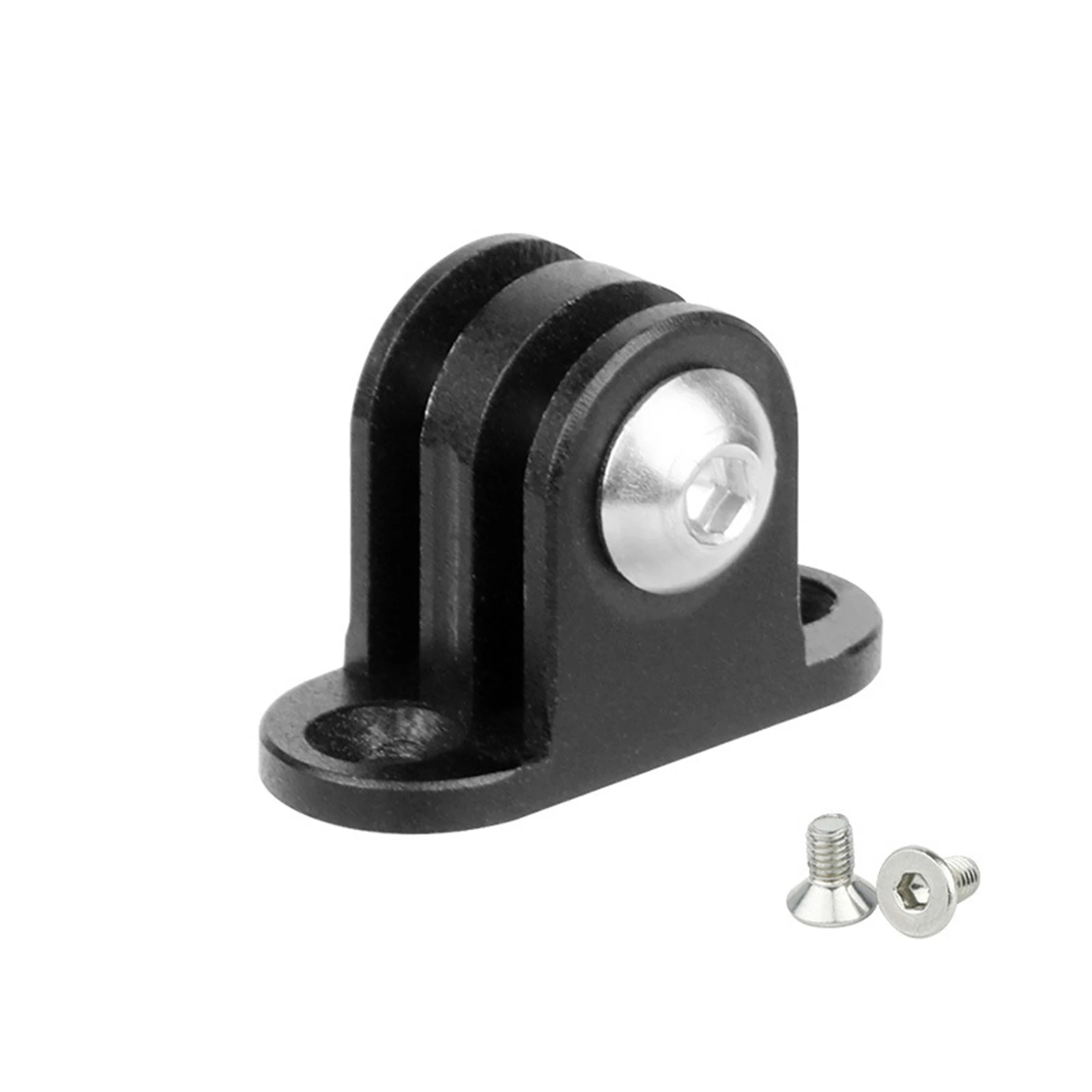 Experience seamless cycling with this durable, matte black bike camera mount designed for secure and easy attachment of your bicycle camera. Crafted from high-quality aluminum alloy, this compact and lightweight accessory (approximately 30x21mm and 15g) integrates effortlessly into your cycling setup. Its ergonomic, slightly curved shape provides a modern, minimalist aesthetic, while the two vertical slots with circular holes offer versatile mounting options. The roller-like attachments at each end ensure a snug fit, holding your camera firmly in place. The small silver screw with a blue thread-locking compound guarantees stability in any riding condition. This sleek accessory combines practicality with style, enhancing every cycling adventure with confidence and reliability.