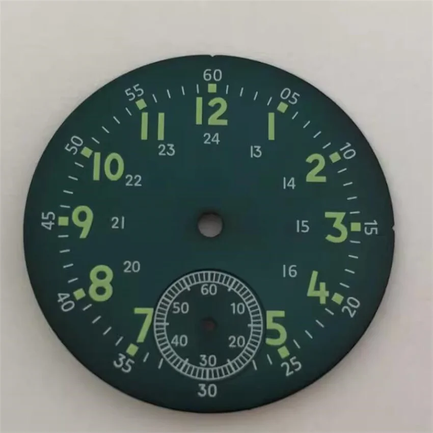 Enhance your watchmaking or repair project with this stunning watch dial designed specifically for ETA6498 and Seagull ST3621 mechanical movements. Featuring a striking deep blue that catches the eye, its glossy finish adds a touch of elegance. Bold white Arabic numeral markers at each hour ensure readability, complemented by a smaller sub-dial at the 6 o'clock position for seconds tracking. With luminescent properties that allow it to glow green in the dark, this numberless dial is both functional and visually captivating. Ideal for all enthusiasts craving simplicity and sophistication, imagine how this dial will transform your watch, making it a standout piece in your collection.