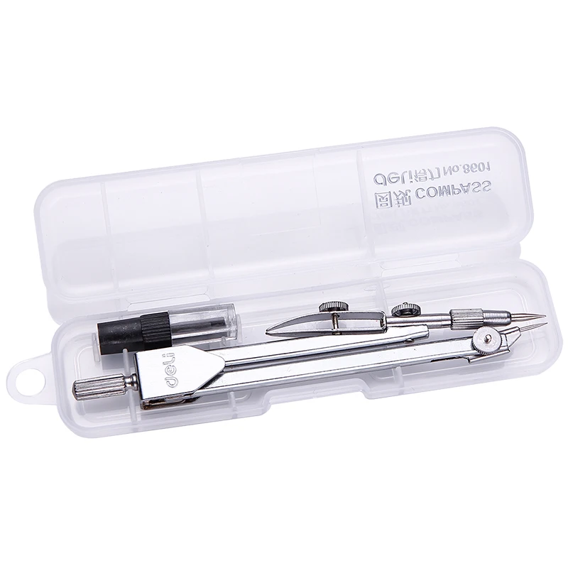Elevate your drawing skills with this Deli Metal Compass Set, designed for students and professionals alike. Featuring a sleek, shiny silver finish, this compass not only looks modern but also ensures durability and functionality. With elongated compass arms measuring up to 15.5 cm, it's equipped with a sharp pointed tip for marking and an adjustable section perfect for accommodating a pencil or fine-point marker. The compact design, housed in a clear plastic case, guarantees easy access to your tools, making it ideal for both classroom and professional settings.