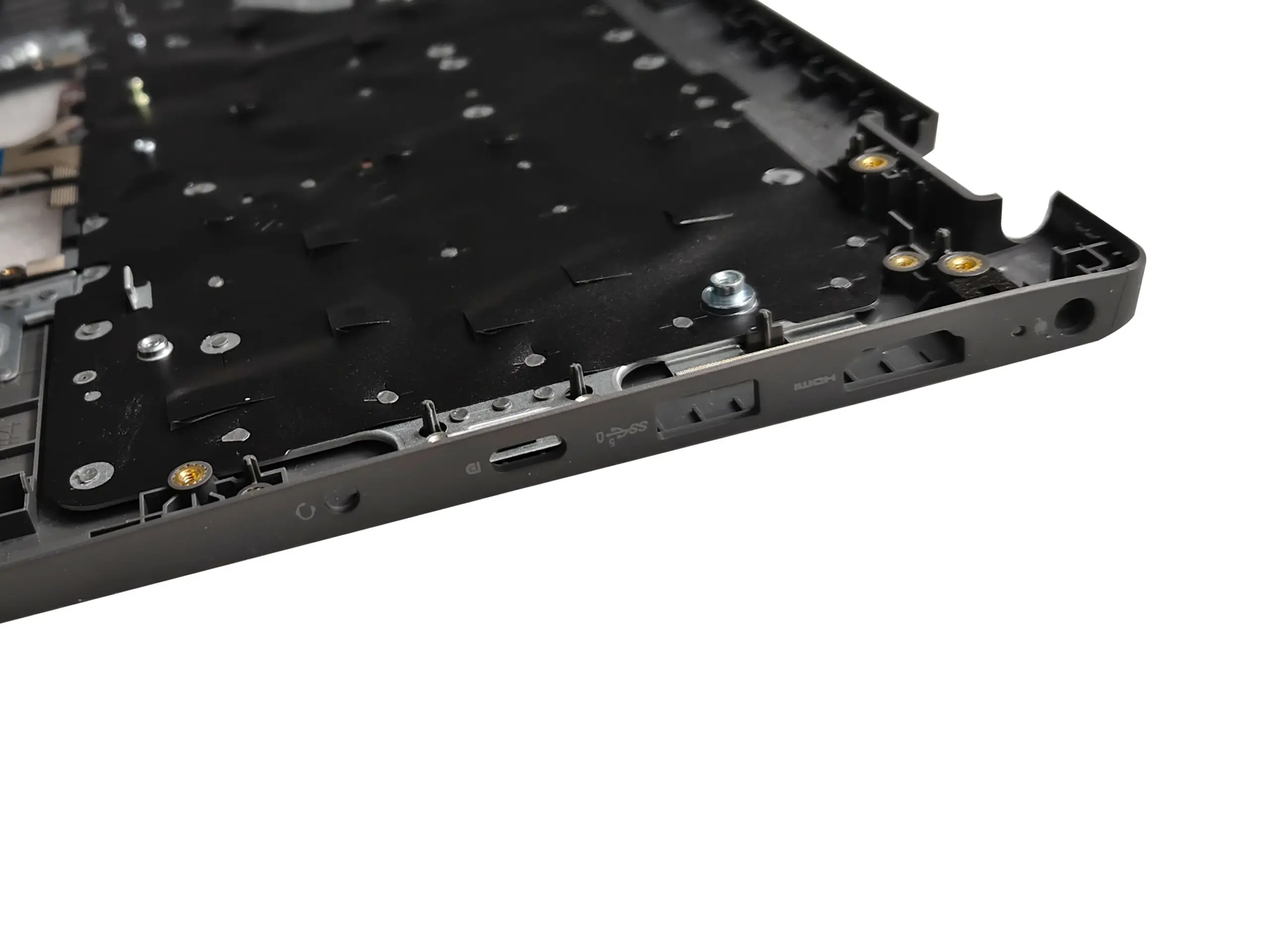 Upgrade your Dell Latitude 3440 seamlessly with this premium palmrest upper cover case. Designed for durability and style, it features a sleek matte black finish that exudes professionalism. The broad, rectangular palmrest area provides ample space for comfortable typing, while the neatly integrated port cutouts ensure easy access to USB, HDMI, and audio connections. The keyboard section showcases a sharp contrast of black keys with white characters, available in backlit versions for enhanced usability in low light environments. Tailored to perfectly match the original specifications, this top cover enhances both the aesthetic appeal and structural integrity of your laptop. Whether replacing a damaged part or upgrading your device, this component ensures a cohesive, high-quality finish that restores your laptop’s pristine look and functionality.