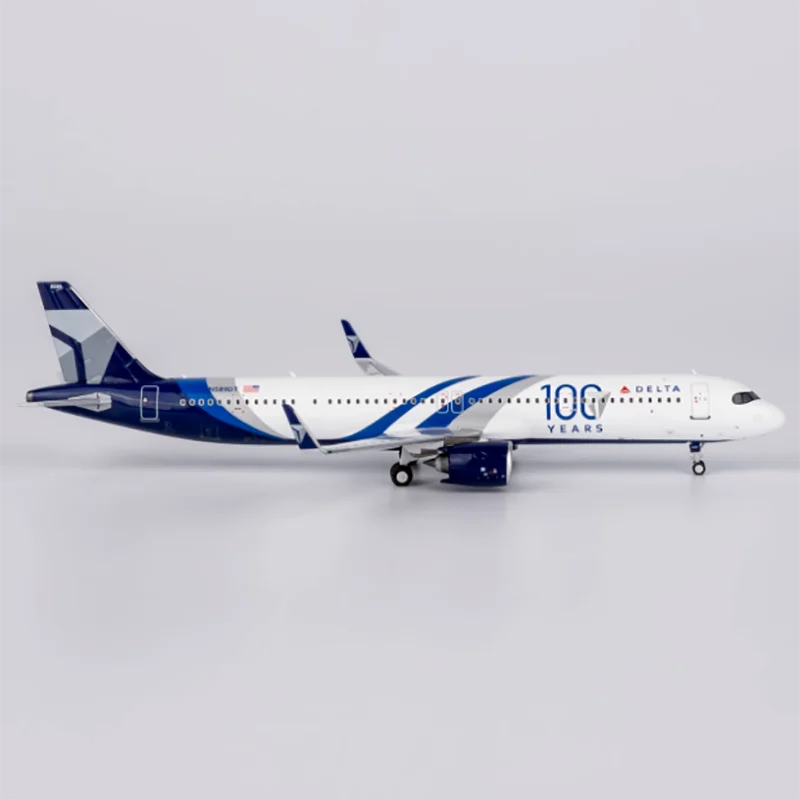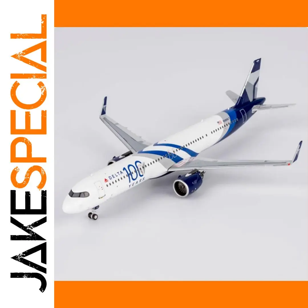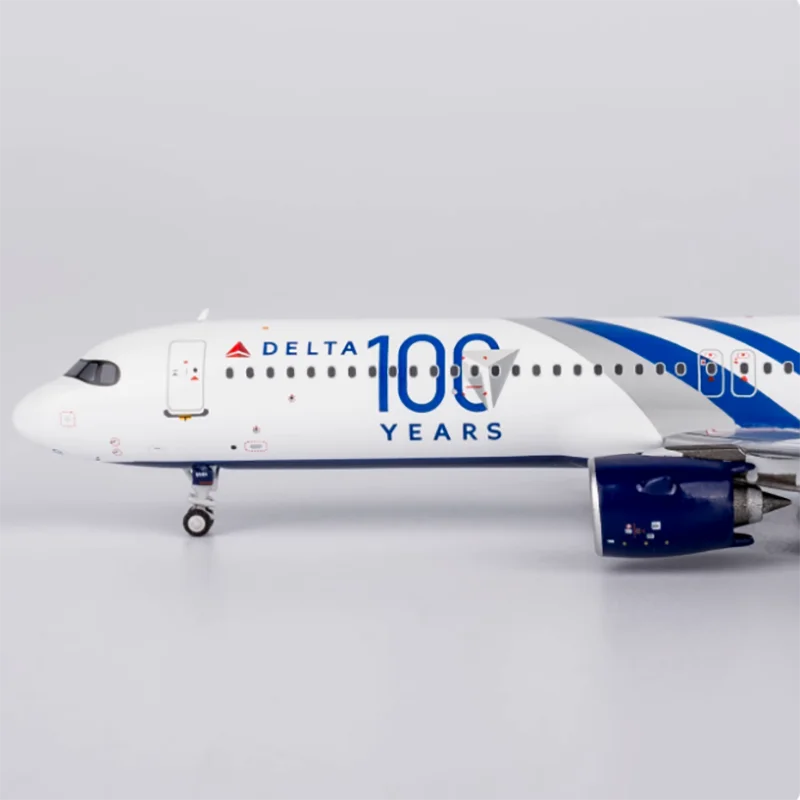 - The fuselage features crisp, clean white paint with large blue numerals “100” and Delta logos, accurately reflecting the special anniversary livery for an authentic collector’s display.