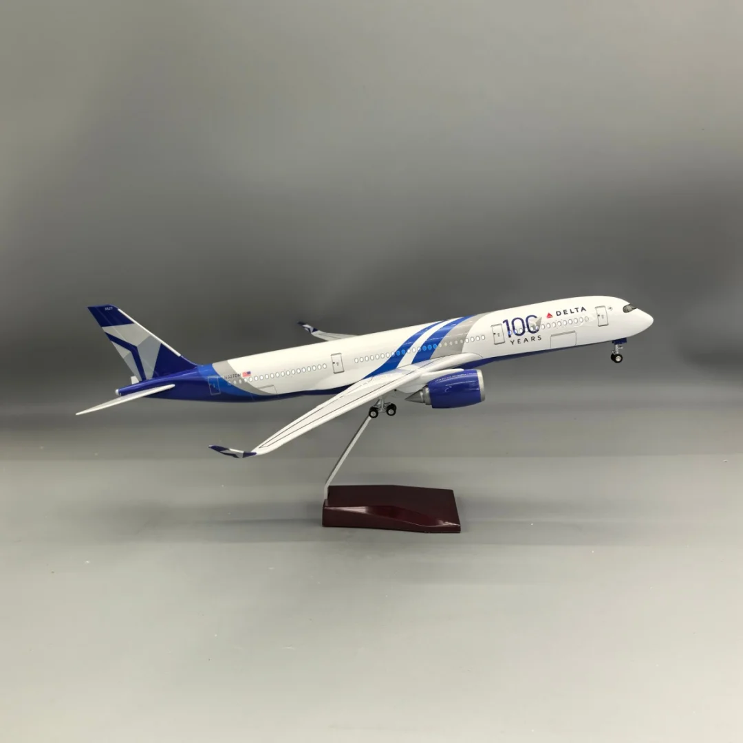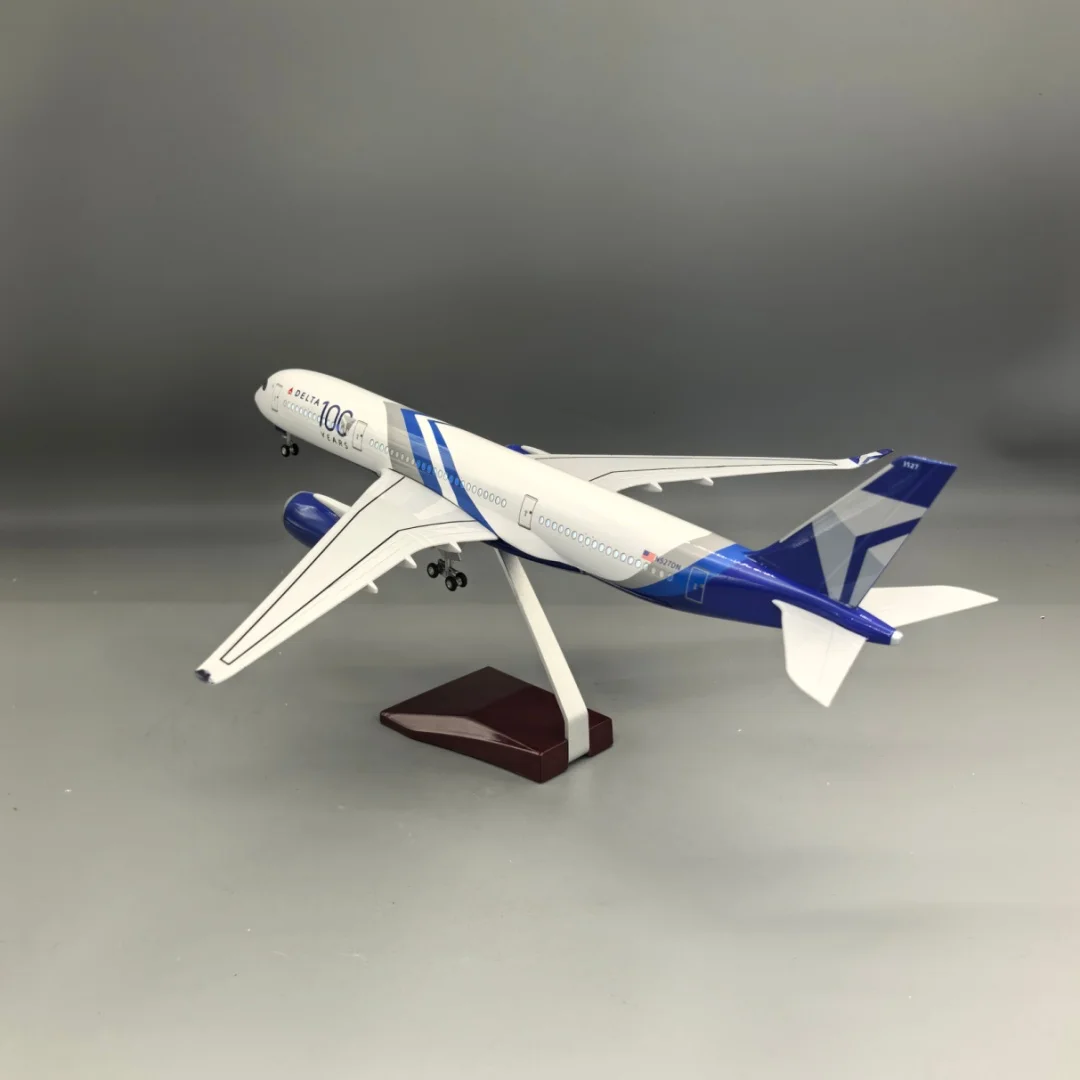 Enhance your space with this impressive Delta Air Lines A350 model, a perfect reminder of the thrill of flying. Its realistic design, detailed craftsmanship, and optional LED lighting make it an exceptional display piece. Whether you’re an aviation enthusiast or a seasoned collector, this model’s elegant appearance and technical features will surely satisfy your appreciation for high-quality miniatures. Bring home this unique piece today, and enjoy the satisfaction of owning a beautifully crafted aircraft replica that showcases your passion and love for aviation history.