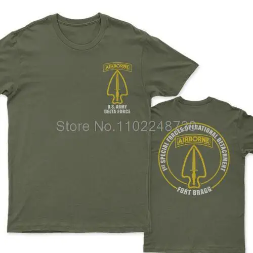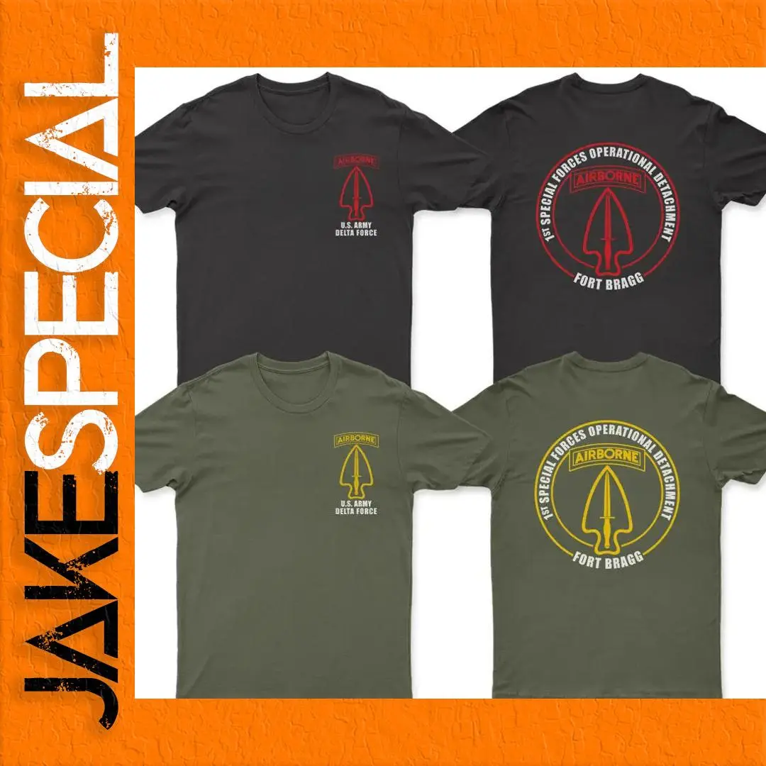 Upgrade your casual wardrobe with our Delta Force 1st Special Forces Operational Detachment (SFOD-D) T-Shirt, crafted from 100% cotton broadcloth for lightweight comfort during spring and summer. Featuring bold, military-inspired graphic prints, the front displays a striking rocket outline in red or yellow, combined with “AIRBORNE” in a banner and white text “U.S. ARMY” and “DELTA FORCE.” The back showcases a prominent circular design with matching rocket graphics and white or yellow text, emphasizing a rugged, authoritative style. Available in black and army green, sizes S to XXXL, this oversize streetwear tee is perfect for those aiming to combine bold aesthetics with comfort.