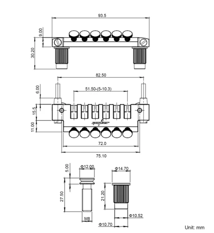 - Features four black saddles with adjustable height screws, providing precise string positioning for optimal playability.