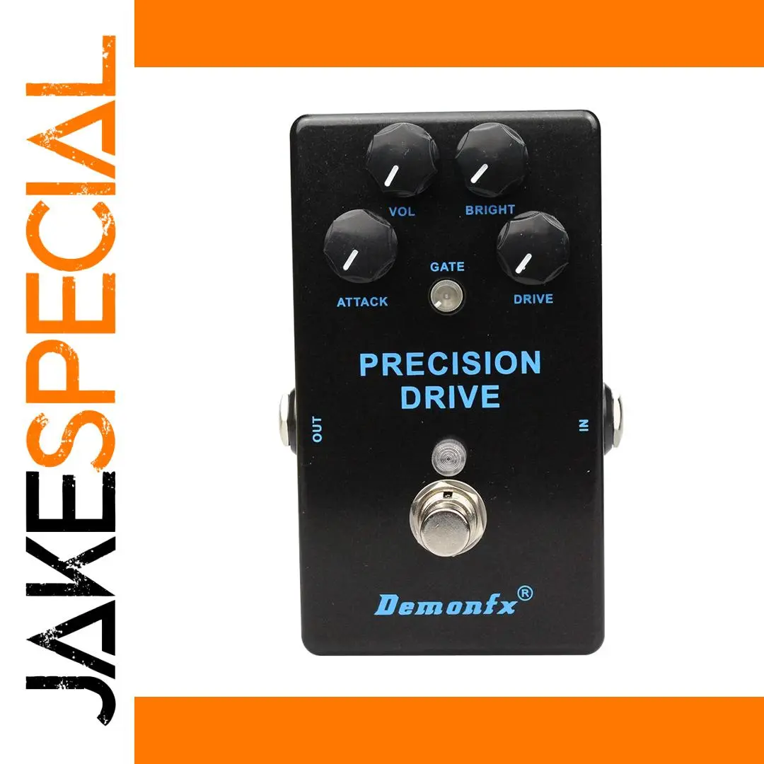Elevate your guitar playing with the Demonfx Precision Drive Effects Pedal. Designed for those who demand precision and clarity, this sleek, matte black pedal features bold, light blue labeling for easy readability. With four intuitive knobs—VOL, BRIGHT, ATTACK, and DRIVE—you’ll have complete control over your sound. The metallic footswitch allows for seamless engagement, while the input and output jacks ensure simple connectivity. Perfect for adding depth and dynamics to your performance, the Precision Drive is an essential tool for guitarists looking to enhance their tone with professional-quality effects. Transform your sound today with this must-have pedal.