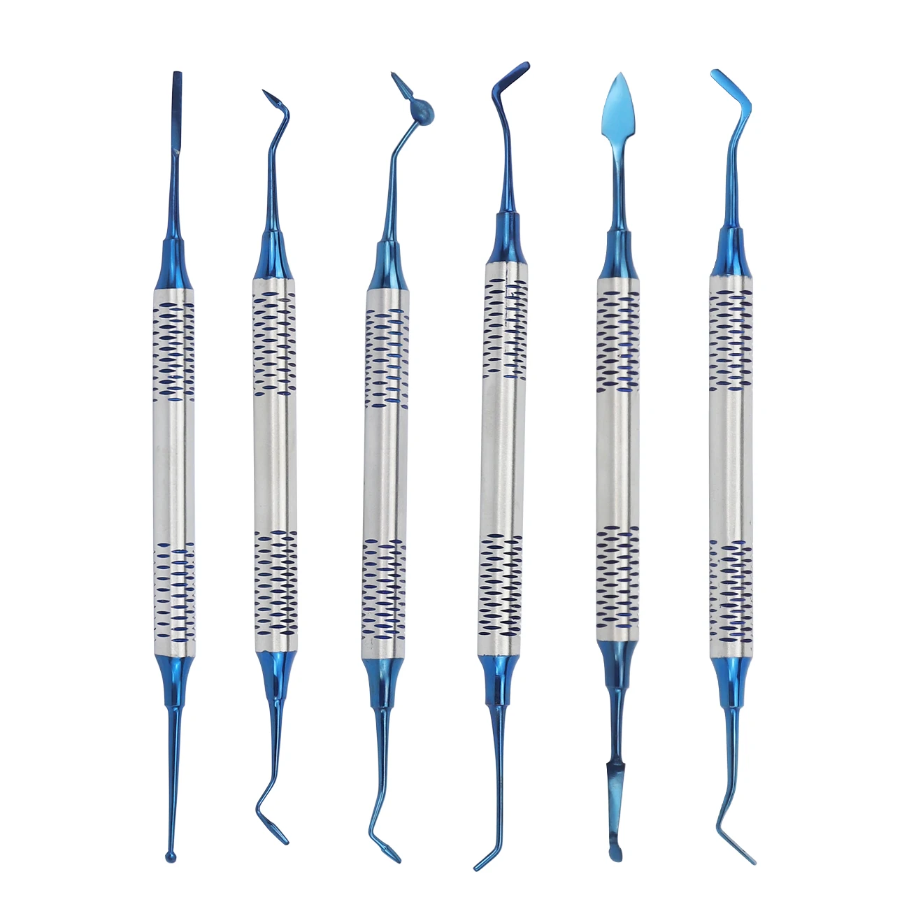 Enhance your dental practice with this 6-piece set of premium composite resin filling spatulas featuring double-headed titanium-plated tips. Crafted from durable metal, these tools offer precise control and smooth application for restorations. Designed for professional use, the set provides versatile options to meet various filling needs, ensuring a seamless workflow and reliable results. The ergonomic design and sturdy construction make them comfortable to handle, helping you deliver high-quality dental care with confidence. Ideal for dentists seeking dependable, efficient tools, this kit combines functionality and durability to support your daily procedures.