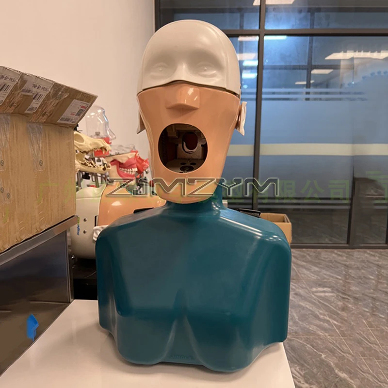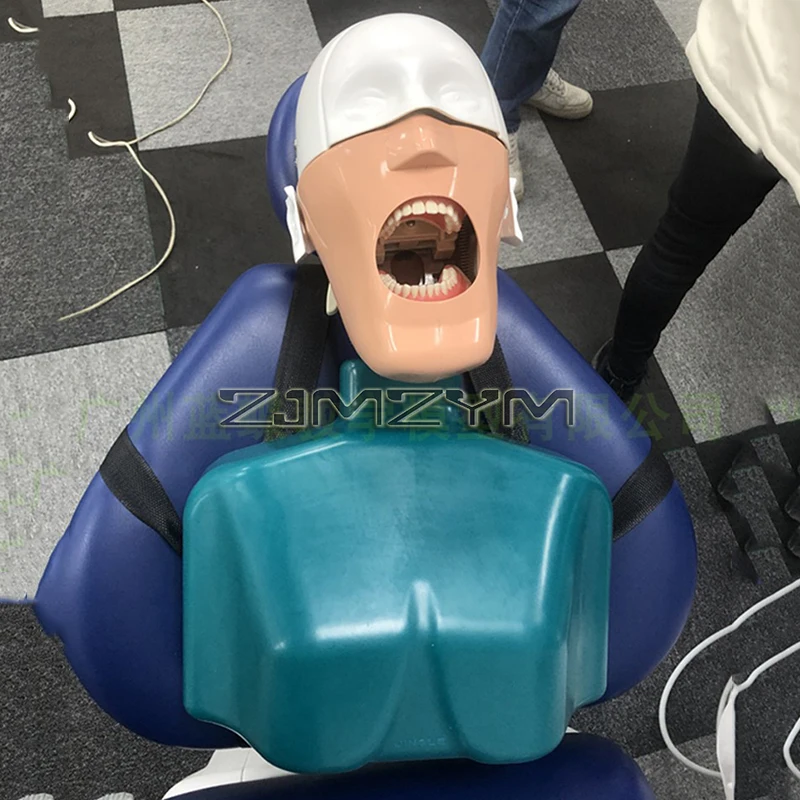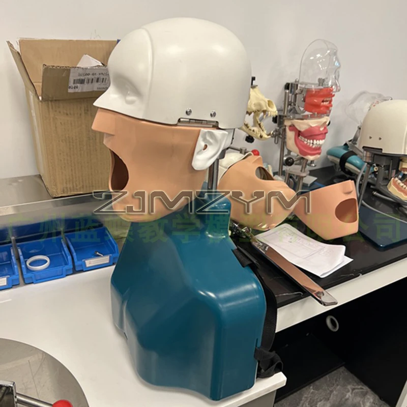 Experience realistic dental training with this dental simulator head model LD4639, designed for practice and educational purposes. The lifelike pink face features detailed facial features, including defined cheeks and a nose, with an open mouth revealing anatomically accurate teeth, such as molars, premolars, canines, and incisors, ideal for dental procedures. Mounted on a smooth, green anatomical torso connected to a rounded blue base, this durable plastic model offers clarity for teaching and skill development. Its natural color palette—vibrant pinks, greens, and blue—enhances realism, making it an indispensable tool for dentistry students and professionals committed to precision and excellence.
