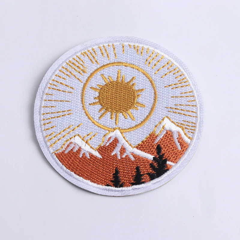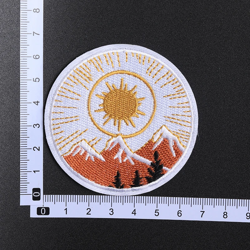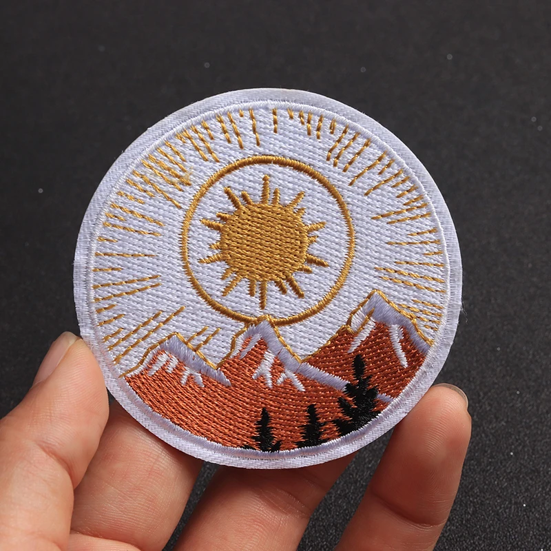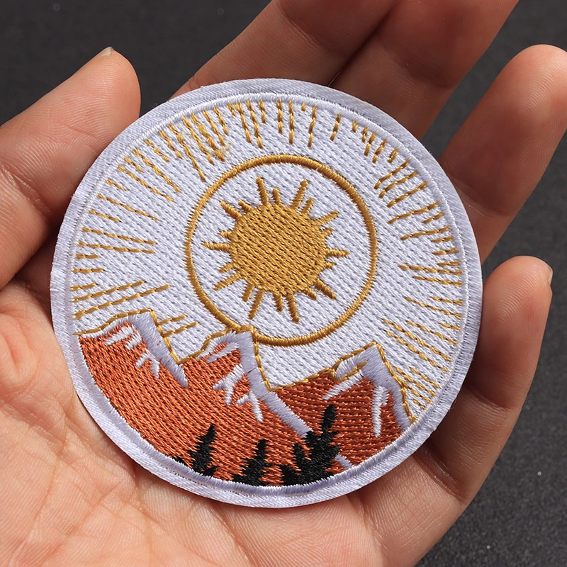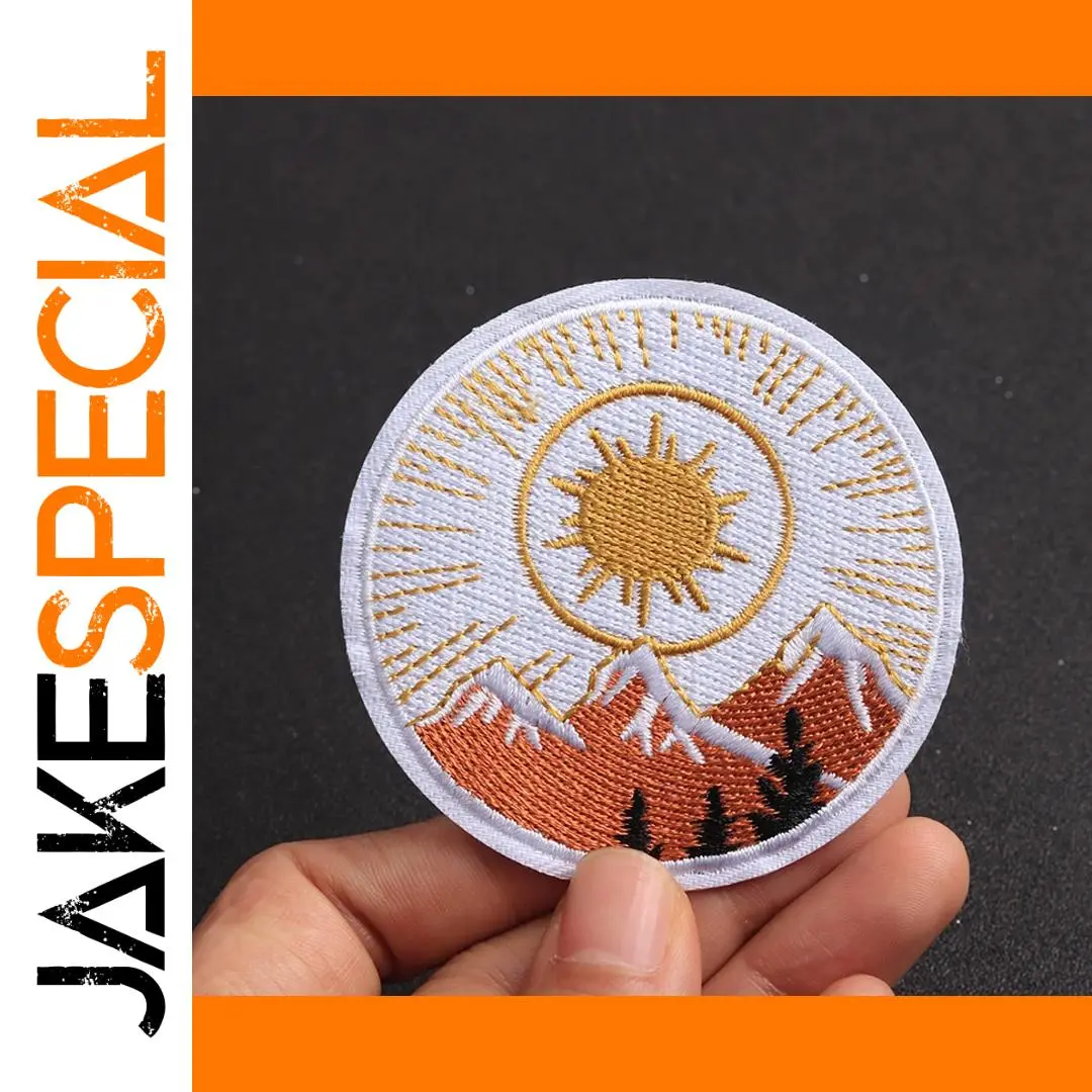 Transform your garments and accessories with this vibrant set of desert sun patches. Each of the five patches measures 6.5 cm in diameter, meticulously crafted from eco-friendly non-woven fabric. Featuring a beautifully embroidered golden sun radiating warmth amidst stylized mountain peaks, each patch adds a splash of color and nature's beauty to your everyday wear. Whether you aim to personalize your jackets, bags, or home textiles, these patches are perfect for a unique touch. The iron-on design ensures they are easy to apply, making your creative projects simple and enjoyable. Elevate your style and express yourself with this eye-catching accessory!