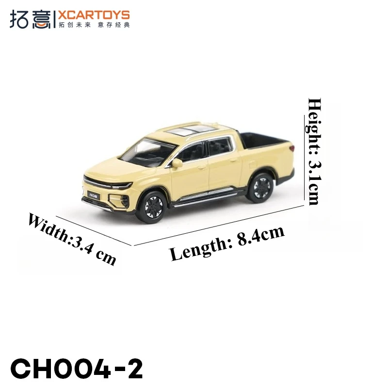 Experience the realism and craftsmanship of this meticulously crafted scale model. This desert yellow pickup truck features a glossy metallic finish that highlights its detailed design, making it a perfect addition to your collection. Its slightly raised body and authentic styling evoke a rugged off-road appeal, while subtle details like door handles, side mirrors, and a roof rack enhance its lifelike appearance. The black wheels with detailed rims create a striking contrast against the vibrant yellow body, adding to its visual appeal. Measuring in at 1:64 scale, this model captures the essence of a real pickup with precision and elegance, making it an ideal display piece for enthusiasts and collectors alike. Elevate your collection with this meticulously detailed miniature.