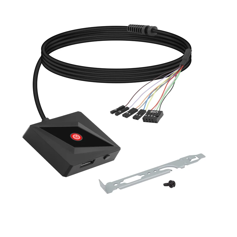 Upgrade your workspace with the Desktop Computer Peripheral Switch, featuring a sleek black ABS shell and a durable PVC cable body. This multi-functional device integrates a USB 2.0 interface, power on button, and restart button, making it easy to connect devices while enhancing efficiency in homes, offices, schools, and internet cafes. Its innovative anti-theft design safeguards your valuable computer components, preventing unauthorized dismantling. This switch is a practical solution for damaged front panel keys, ensuring seamless operation. Compact and stylish, it fits perfectly in any environment, measuring with a possible error of 0-3mm.