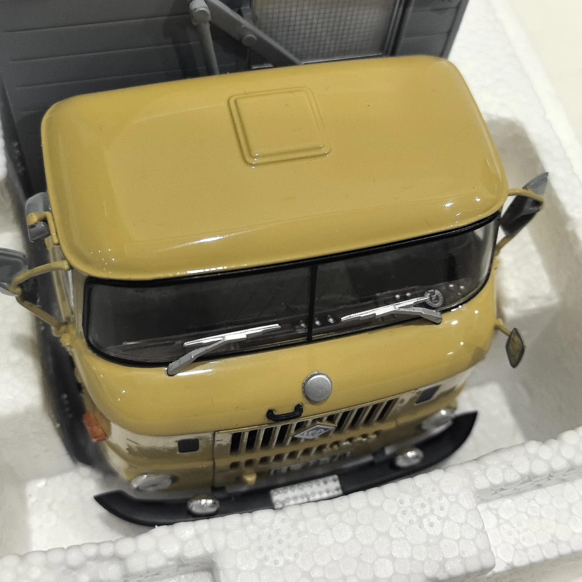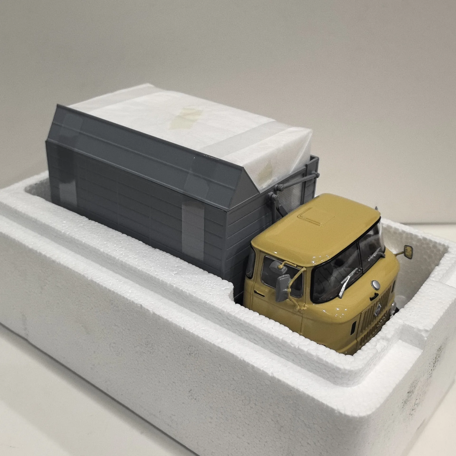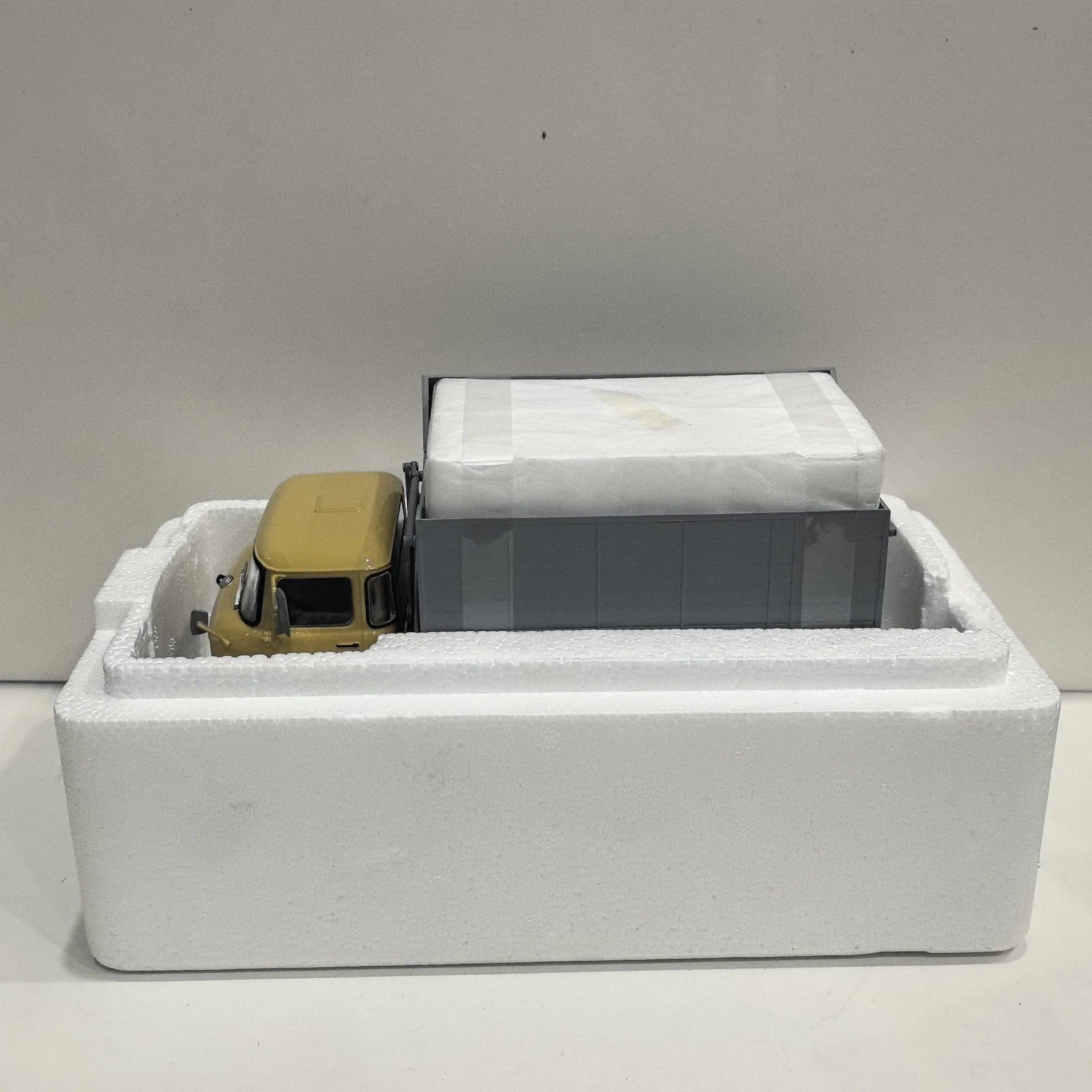Step into the world of vintage truck craftsmanship with this highly detailed 1/32 scale diecast model of the IFA W50 SHA Kipper, an iconic East German legal truck. Crafted using premium alloys and plastics, this static collectible captures the rugged charm of the original, showcasing intricate features like a glossy pale yellow cab, clear black-framed windows, and a detailed front grille. The cargo bed, painted in dark gray or black, features textured panel lines and ribbed side panels, complemented by a white tarp cover secured with metal supports. Carefully designed for collectors, this model emphasizes realism and craftsmanship, making it a perfect display piece for enthusiasts who appreciate detailed miniature recreations of classic vehicles.