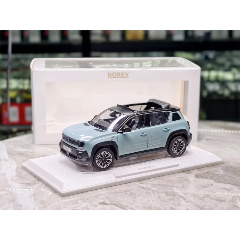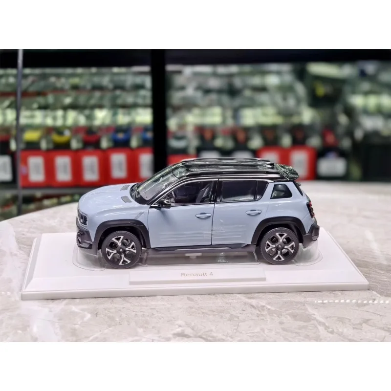 Imagine adding a striking, handcrafted collectible to your collection—this detailed 1:18 scale die-cast alloy model showcases two stylish Renault 4s in modern pastel blue shades with black roofs and trims. The model offers a meticulously crafted, durable design emphasizing realism. Each car features openable doors, revealing intricate interior details like seats and steering components. The multi-spoke wheels, detailed front grille, headlights, taillights, and subtle vents highlight the exceptional craftsmanship. Perfect for adult collectors, this resin and metal model measures approximately 26 cm in length and exudes sophistication. Whether displayed alone or as part of a collection, it brings a modern yet vintage-inspired aesthetic to your space and promises a high-quality, collectible experience.
