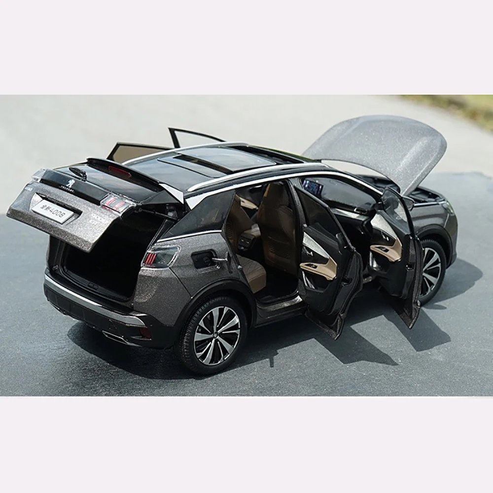 Experience the elegance and precision of this miniature Peugeot 4008 SUV, captured in stunning 1:18 scale detail. Crafted from high-quality alloy, rubber, and ABS, this model boasts a sleek, modern design highlighted by a glossy metallic dark grey or black finish. Its streamlined body showcases sharp lines, subtle contours, and authentic features like chrome accents on the grille, side mirrors, and door handles. The front grille is intricately designed with small mesh elements and a prominent Peugeot emblem, complemented by crisply styled headlights with clear lenses and internal details. The multi-spoke alloy rims and rubber tires complete the realistic appearance. This model is ideal for collectors, display enthusiasts, or as a refined gift, bringing a touch of sophistication to any space.