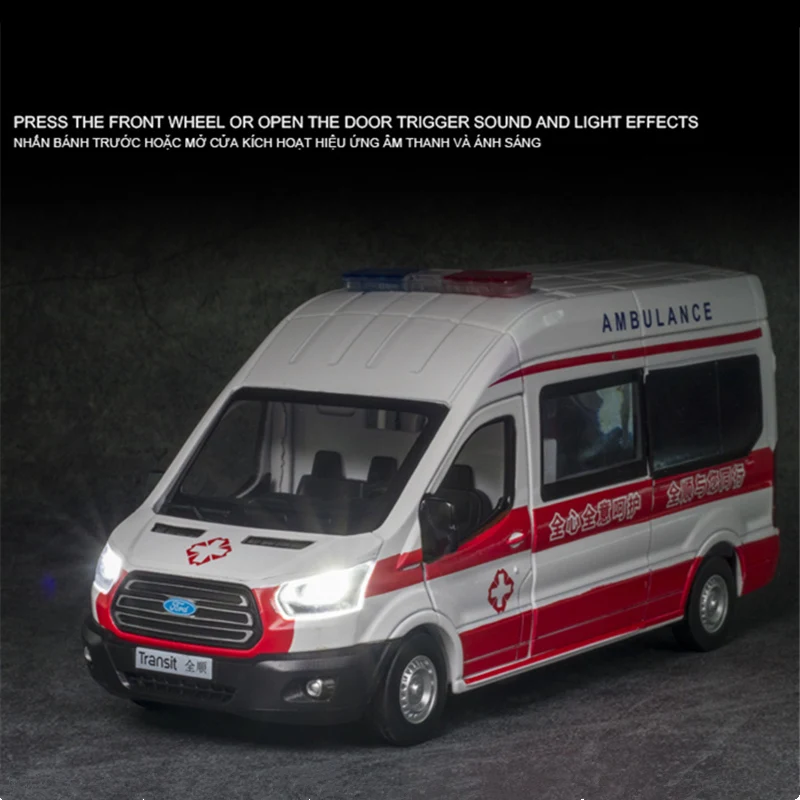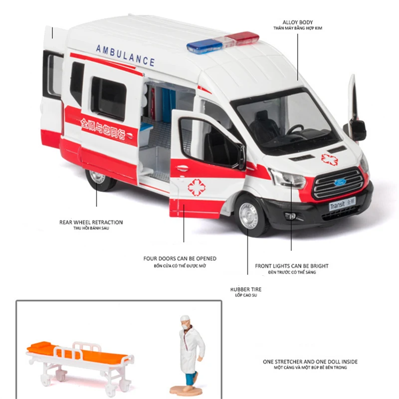 Keys features of this Ford Transit ambulance toy model