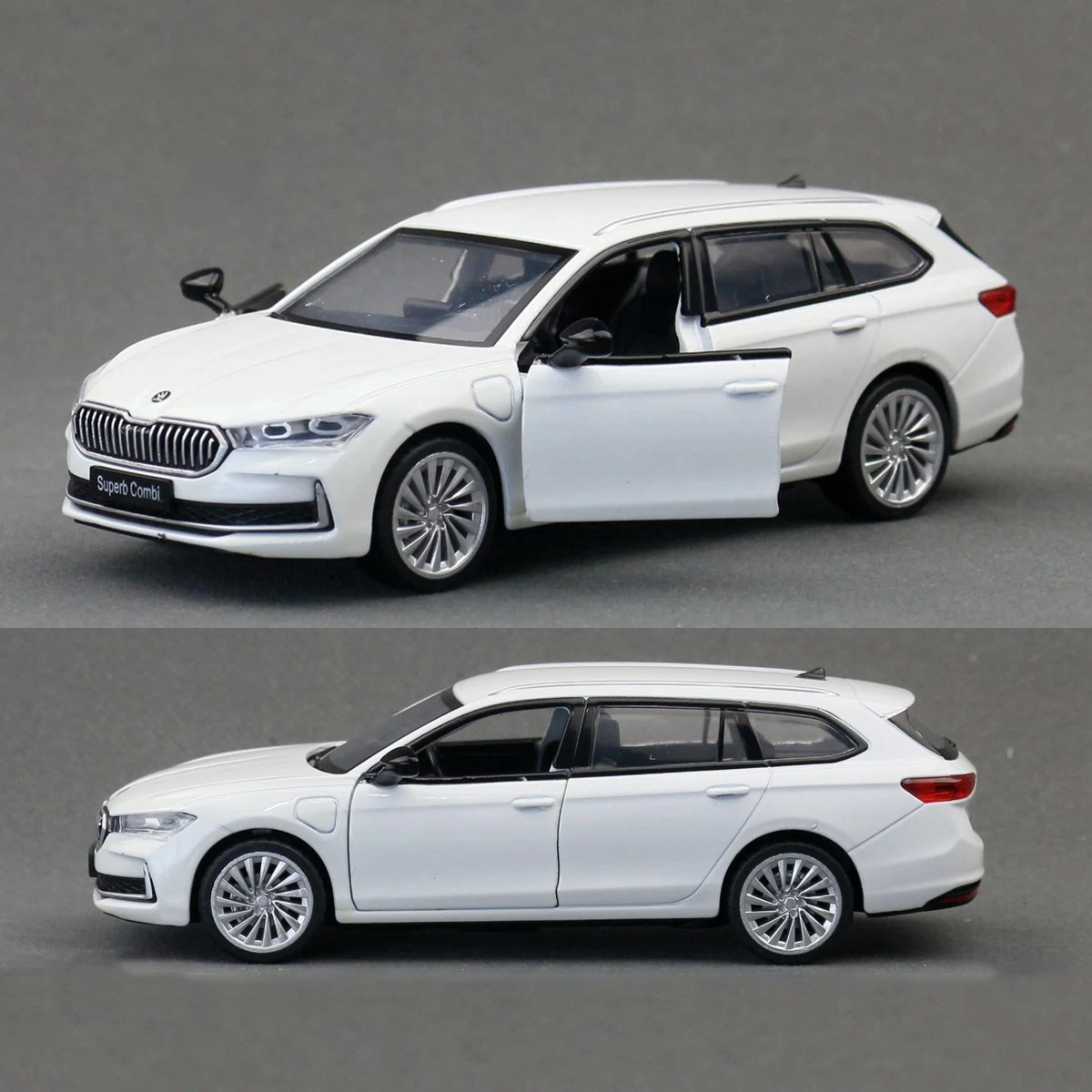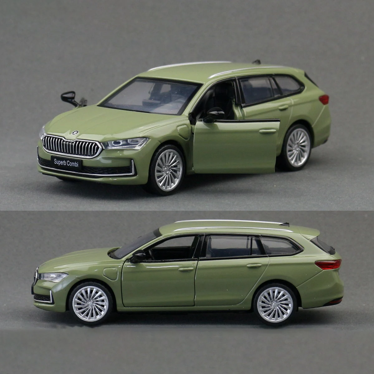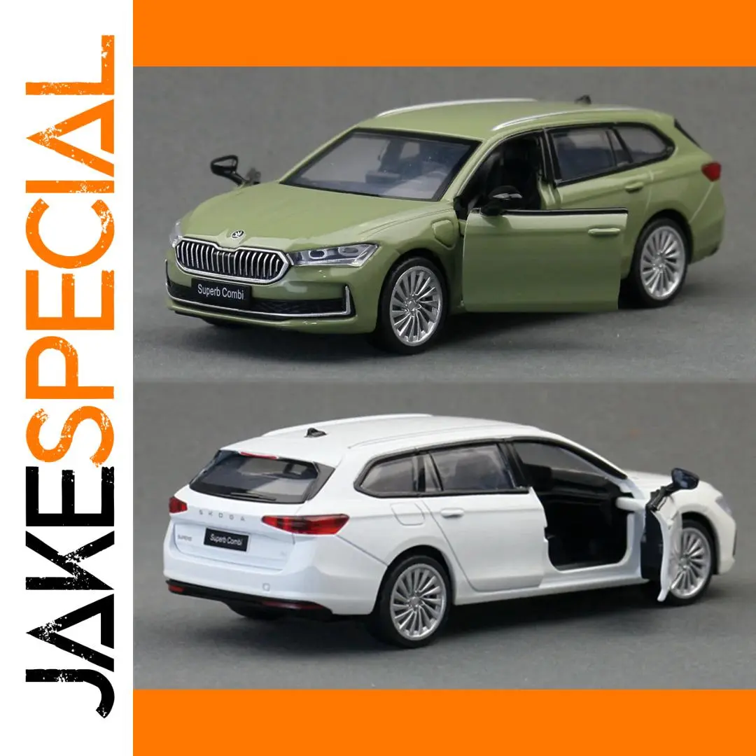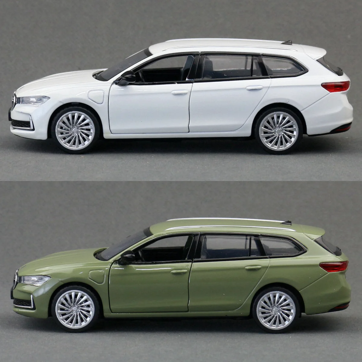 Immerse yourself in the elegance and precision of this highly detailed 1:35 scale diecast model of the Škoda Superb Combi IV station wagon. Crafted from alloy and plastic, this model captures the sleek, modern design with smooth, curved lines, and a refined silhouette. The light green and white versions highlight a polished aesthetic, with metallic chrome accents on the grille and multi-spoke wheel rims that reflect realistic craftsmanship. The LED-inspired headlights and taillights add a futuristic touch, enhancing its sporty yet elegant finesse. Perfect for collectors and enthusiasts, it’s an impressive display piece that brings the importance of fine detail and quality craftsmanship right into your space. Visualize this model as a centerpiece that embodies style and sophistication.