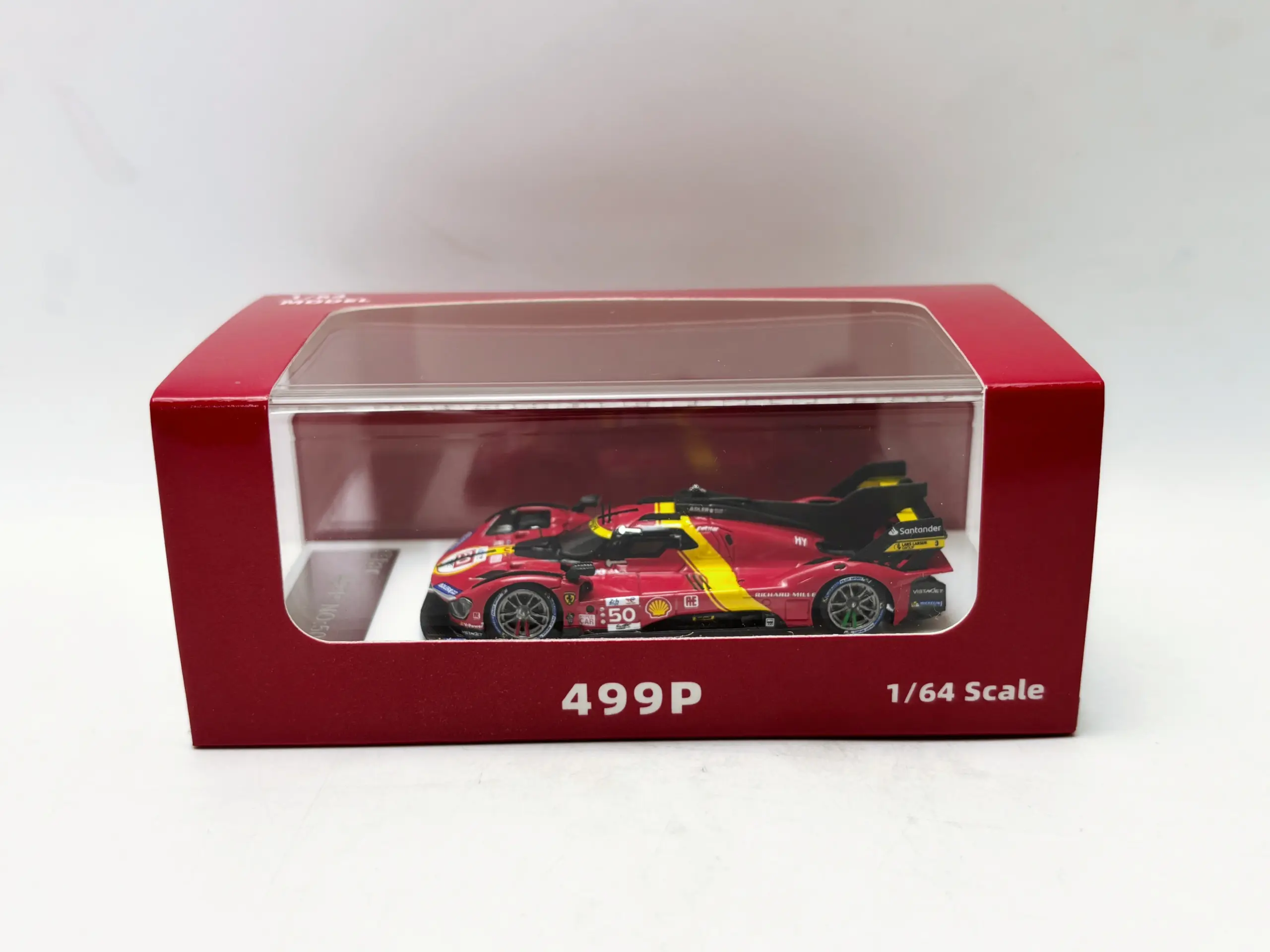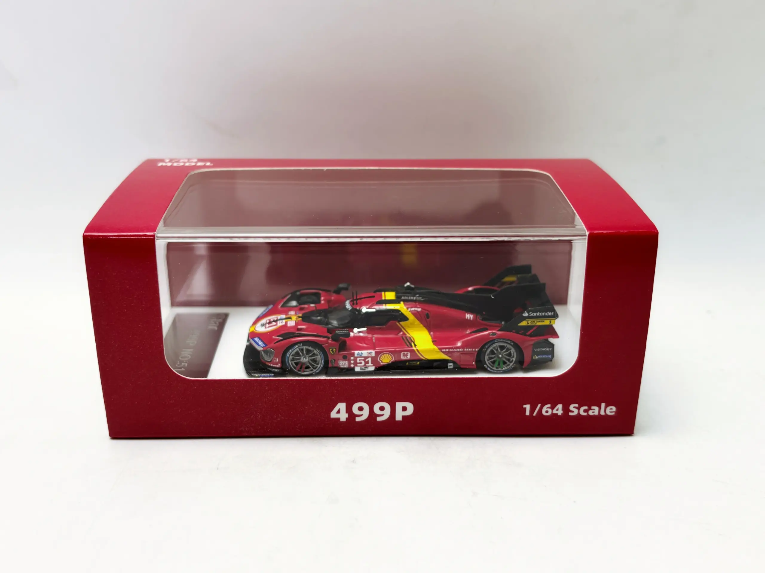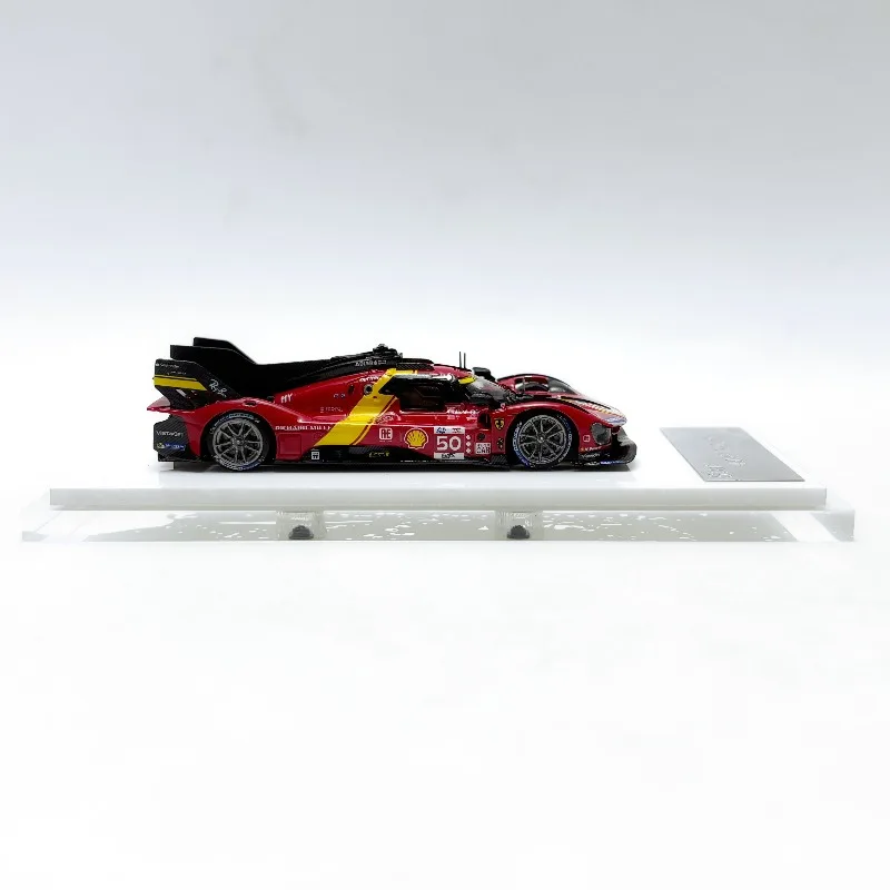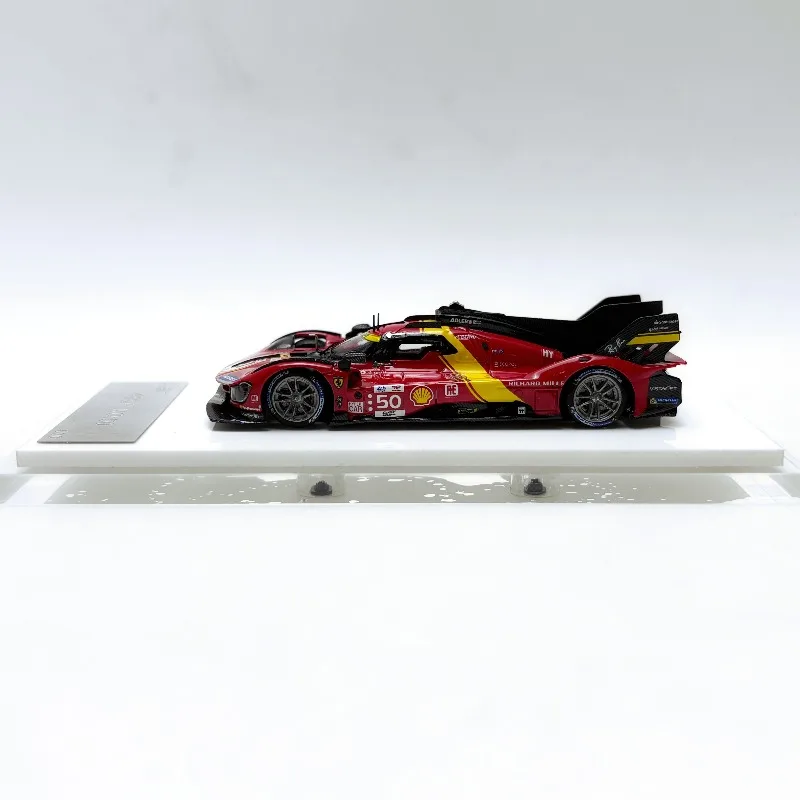 Imagine adding a striking and meticulously crafted model of the 2023 Le Mans 24H Endurance Race 499P to your collection. This resin car model, based on the sleek 1:64 scale replica, measures approximately 7 cm long—perfect for display and admiration. Its vibrant red finish accented with bright yellow details captures the dynamic essence of the race car, highlighting its smooth, glossy surface and aerodynamic design. The detailed features include a low, streamlined nose, wide air intake, multi-spoke rims, and a rear wing with aerodynamic fins. This model is ideal for enthusiasts and collectors who appreciate craftsmanship, realism, and the thrill of endurance racing, bringing racing history right into your collection.
