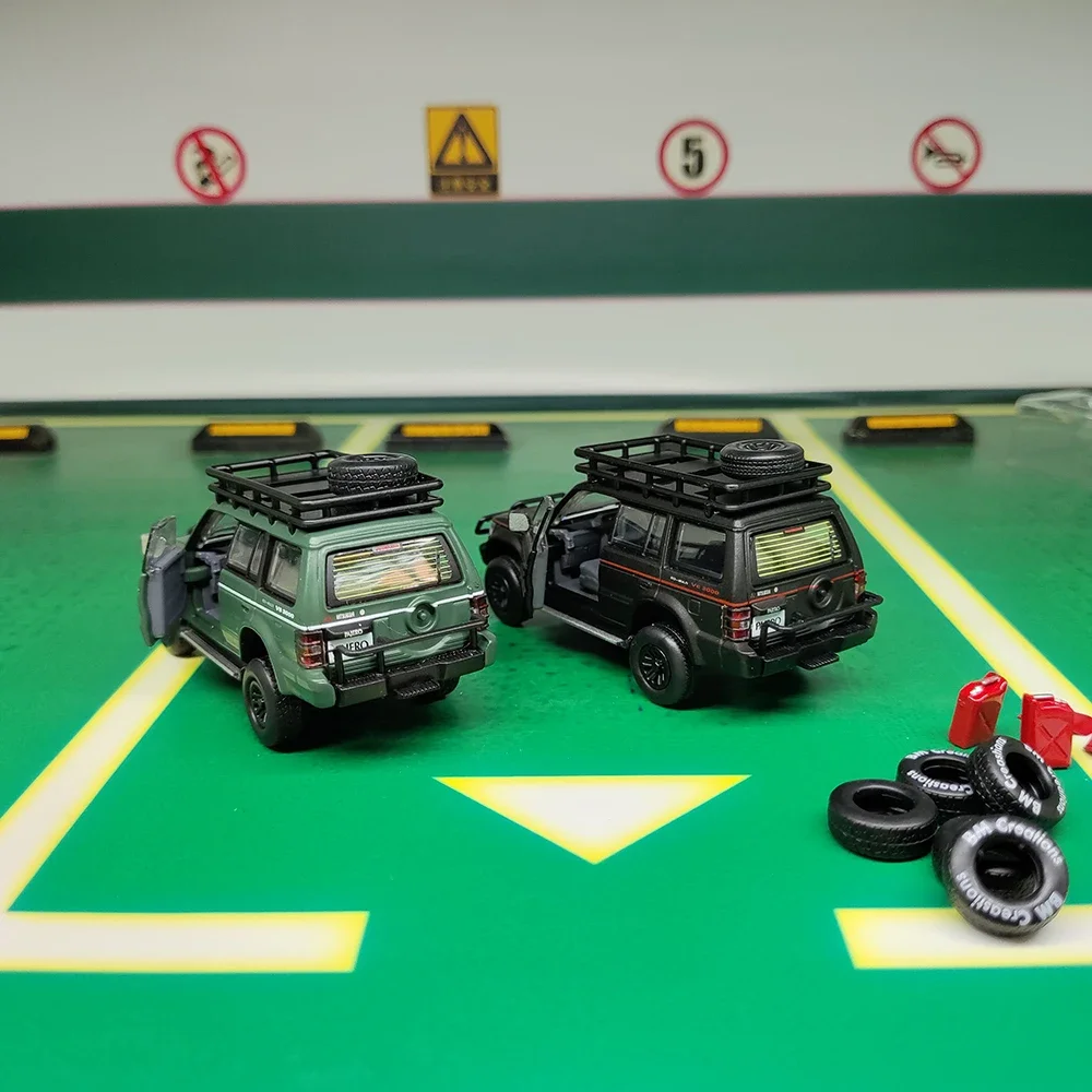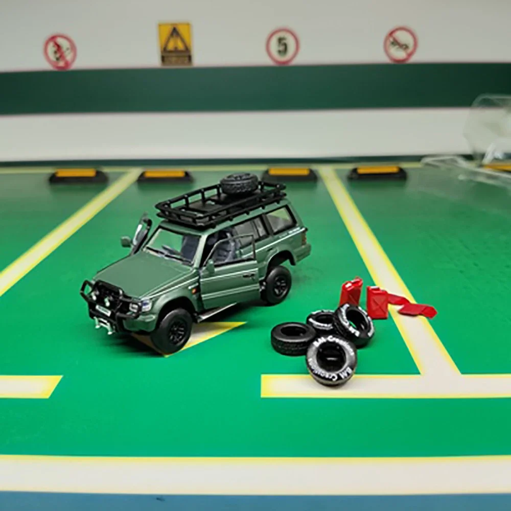 Experience the realism of this meticulously crafted 1:64 scale die-cast alloy Mitsubishi Pajero second-generation model. With its sleek design and vibrant colors, it captures the rugged off-road aesthetic perfectly. The black and green finishes, complemented by black roof racks holding miniature spare tires, bring authenticity to this collectible piece. Its compact size of approximately 7x3x2.5 cm makes it ideal for display on desks or shelves, allowing you to showcase a high level of craftsmanship. The model features movable wheels for realistic positioning, detailed grille, headlights, and transparent windows revealing an interior rich in detail. This static ornament is perfect for hobbyists or as a thoughtful gift for off-road enthusiasts, offering both visual appeal and collectible value.