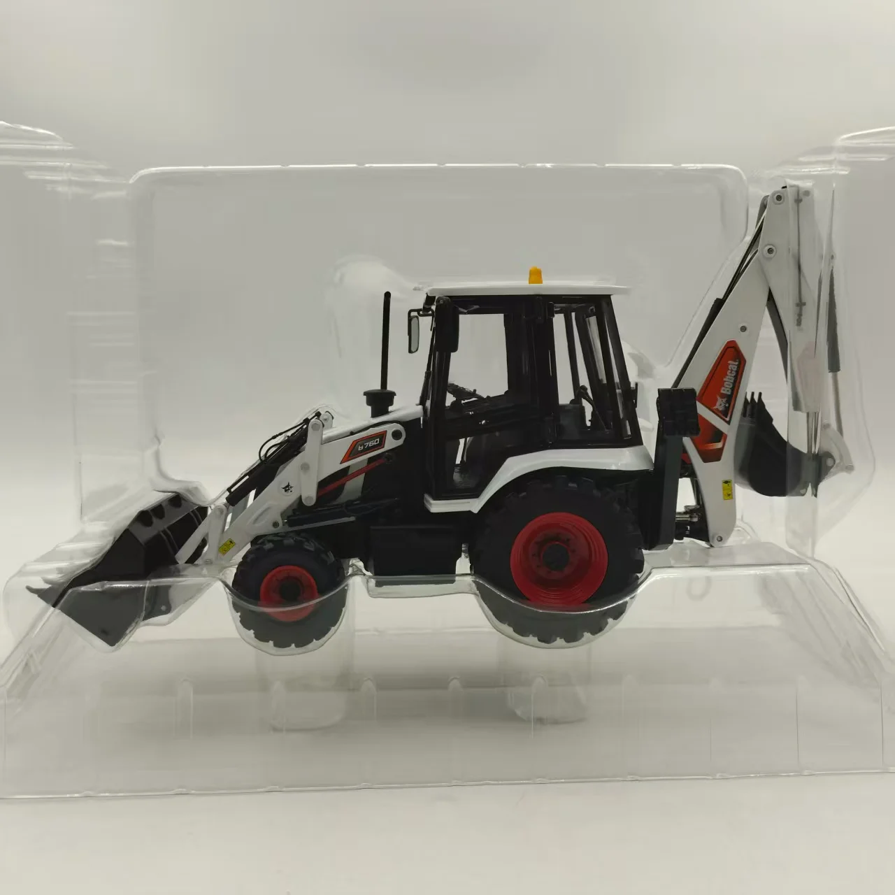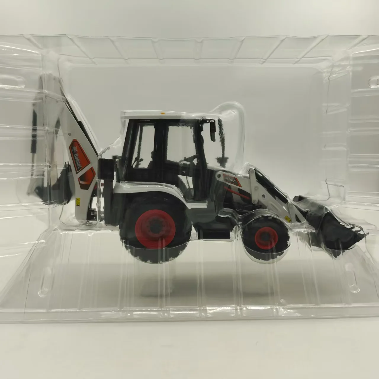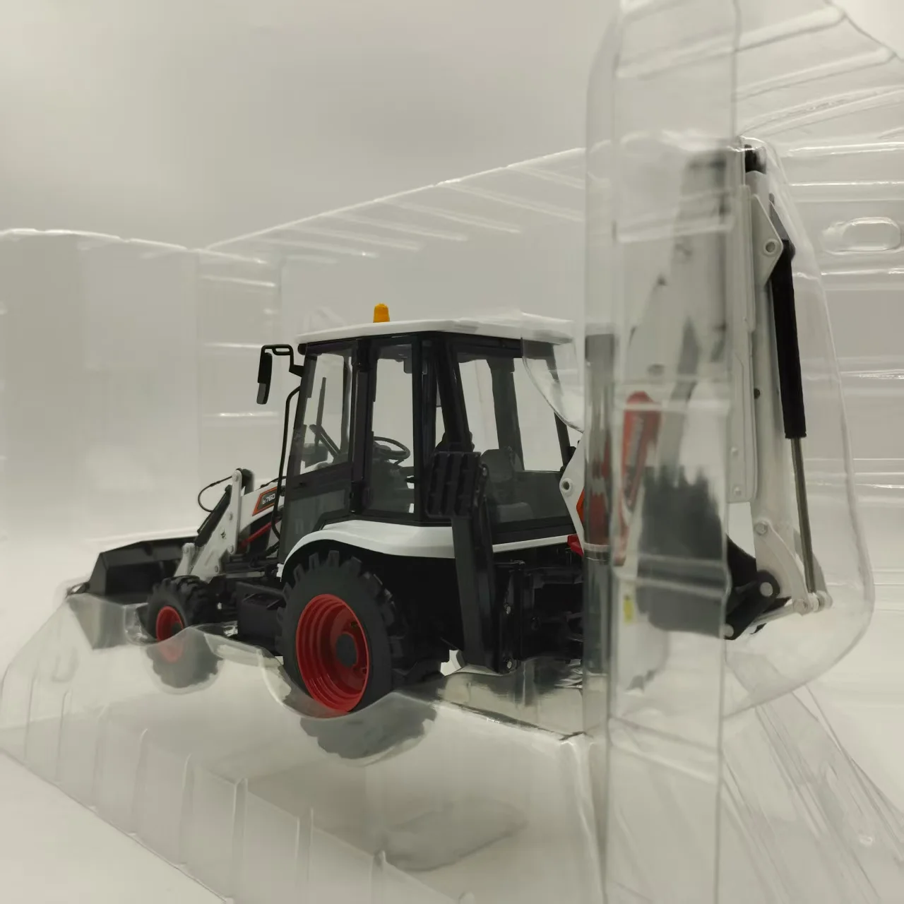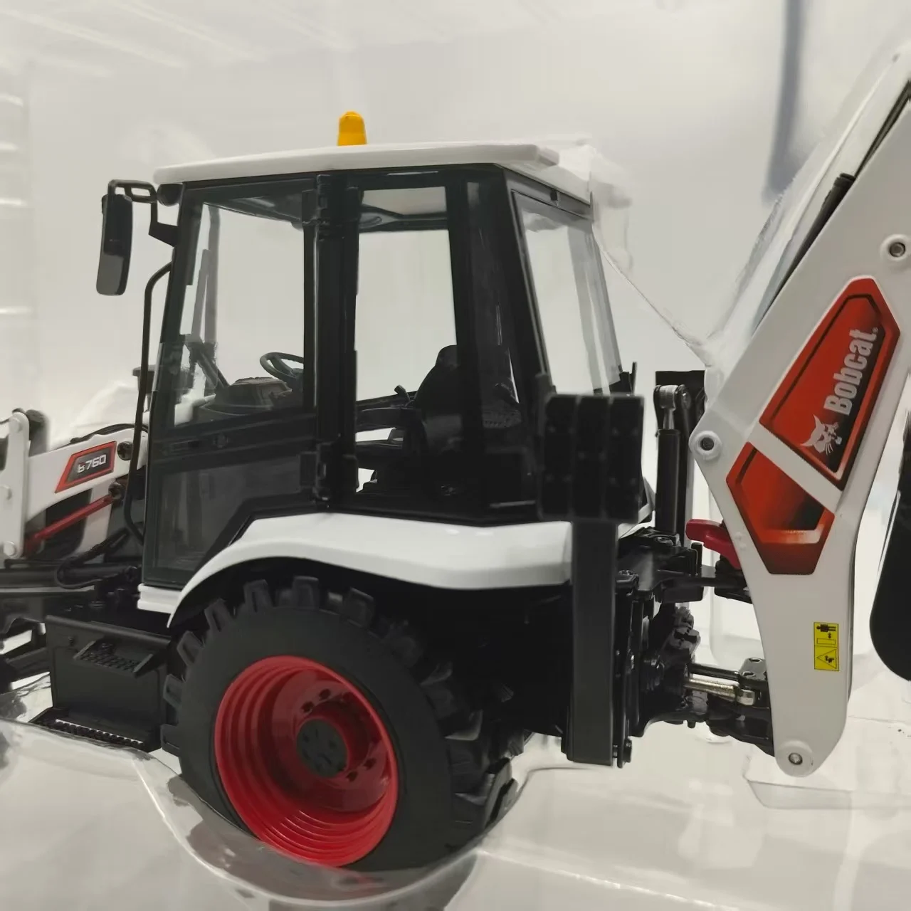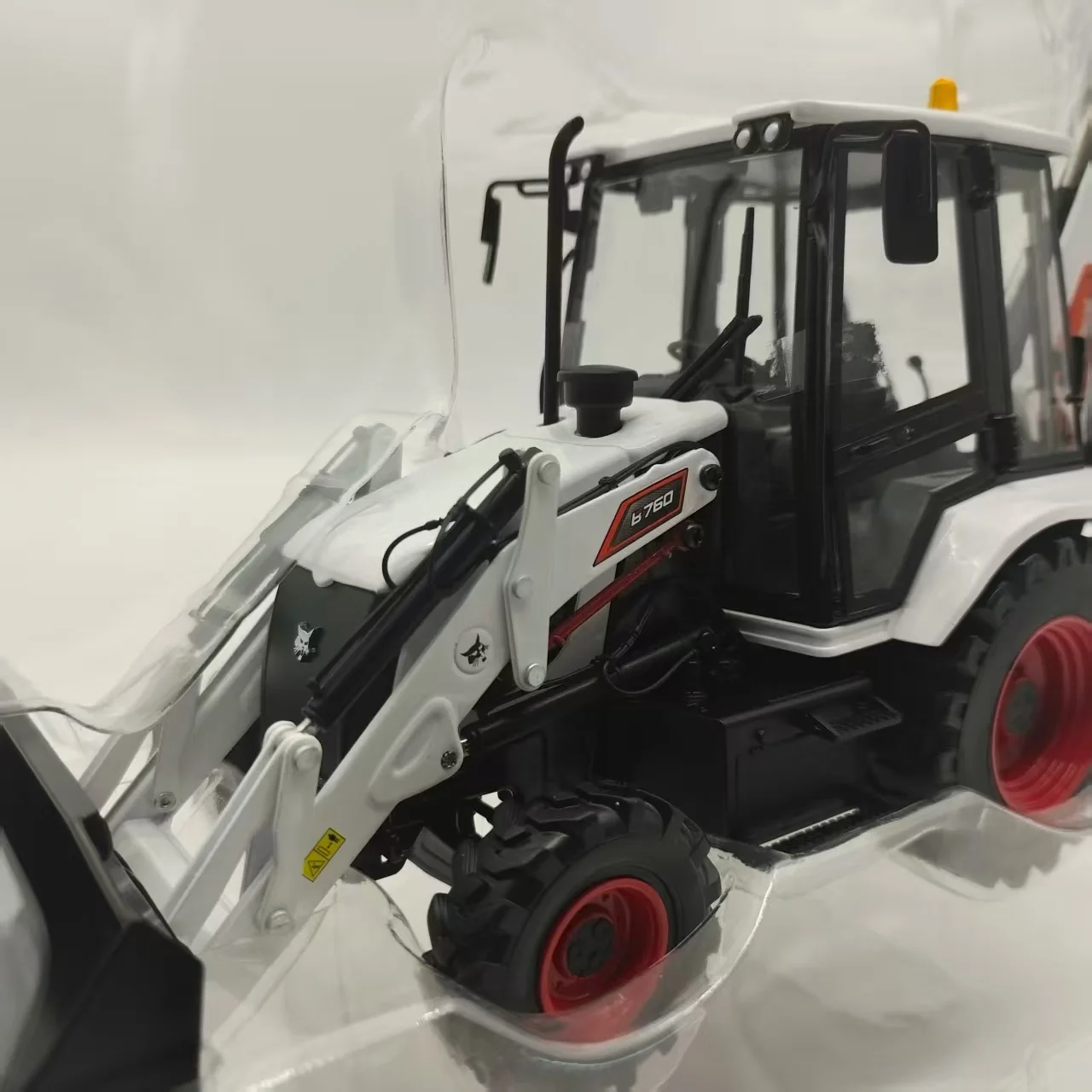 Experience the realism and craftsmanship of this meticulously crafted miniature model representing the iconic Bobcat B760 backhoe loader. Designed with precision, this 1:25 scale model showcases a sleek, predominantly white body with contrasting black details, accented by vibrant red rims that add a bold touch. Its surface features fine painting, decals, and logos that faithfully replicate the original machinery. Enclosed within a transparent display case, the model includes articulated loader and backhoe arms that mimic real equipment movements. The detailed interior visible through clear plastic windows enhances its authenticity. Made from alloy, plastic, and rubber, it is perfect for collectors and enthusiasts seeking a high-quality static decoration piece, offering a striking addition to any collection.