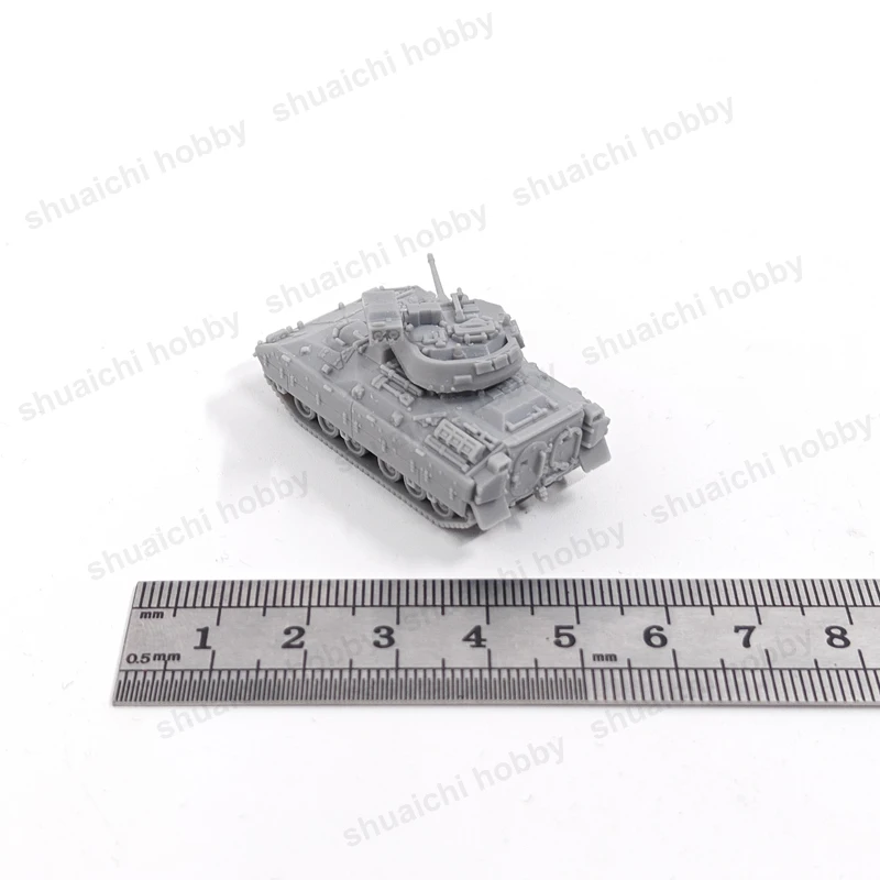 - Technical specifications include: resin material, 3D printing process, detailed medium infantry battle vehicle features, approximately 1/144 scale, and CE certification.