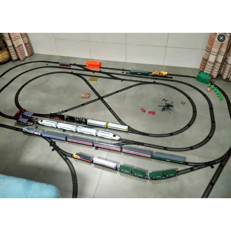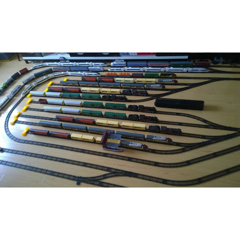 - Features a diverse array of train models in vibrant colors such as black, white, yellow, and blue, to create an attractive and vibrant scene.