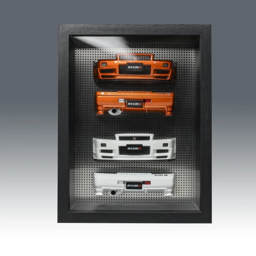 Immerse yourself in the beauty of detailed miniatures with this premium 1:18 scale set, showcasing front and rear bumpers of the famous GTR R34 and Honda S2000. Crafted from high-quality resin, plastic, and rubber, these models feature intricate details such as contours, vents, and grille patterns, capturing the sporty and aerodynamic essence of real high-performance vehicles. Finished in metallic silver and glossy dark blue, they incorporate refined craftsmanship with a smooth, reflective surface that highlights their realistic appeal. Perfect for collectors and enthusiasts, this set adds a modern, sporty touch to your display. Each piece displays subtle paint imperfections, characteristic of expertly crafted resin collectibles, elevating their authenticity and charm.