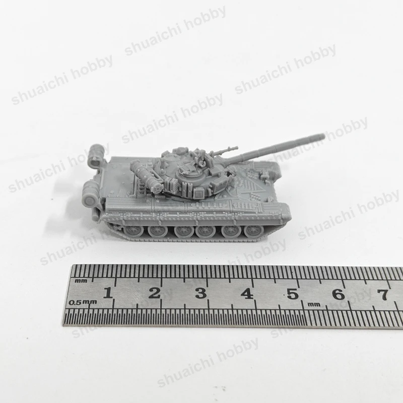 Imagine showcasing this meticulously crafted miniature of the T-80B main battle tank, perfect for military model enthusiasts. Each model is a 1/144 scale, made from resin and 3D printed to capture intricate details such as the textured armor, finely molded hatches, and realistic turret features with a long gun barrel and small machine guns. The models arrive in a uniform matte gray finish, emphasizing their detailed craftsmanship. Designed for DIY assembly, these unpainted models allow you to personalize with your preferred colors and details, making each piece uniquely yours. The assembly process involves trimming support residues and carefully filing rough surfaces to achieve a polished, realistic look. Perfect for dedicated collectors and hobbyists who appreciate precision work.
