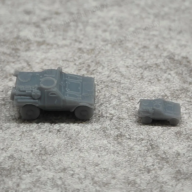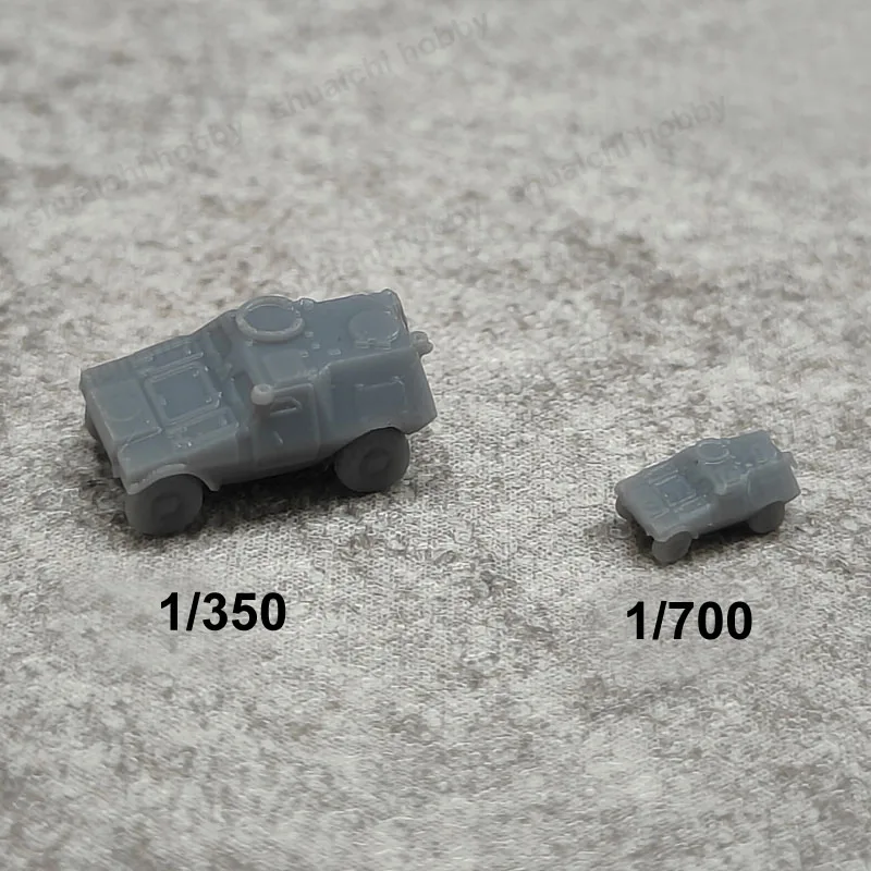 Enhance your military collection with this detailed set of resin VBL armored vehicle models, available in two precise scales: 1/350 (1.08cm length) and 1/700 (0.54cm length). Crafted with 3D printing technology, these models capture the angular, utilitarian design of real reconnaissance vehicles, featuring finely detailed panel lines, hatches, and molded features that emphasize realism and craftsmanship. Their sleek, uniform light gray resin finish enhances their authentic military appearance. Designed for serious model enthusiasts, these assembly-required miniatures allow you to create a vivid diorama or display piece. Their small size and fragile nature demand careful handling, making them perfect for skilled hobbyists seeking a challenge. These models will add a tactical, authentic touch to your military showcase.