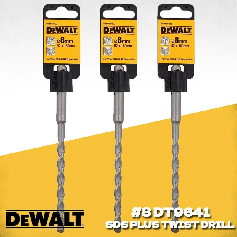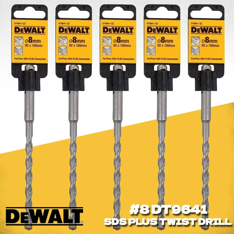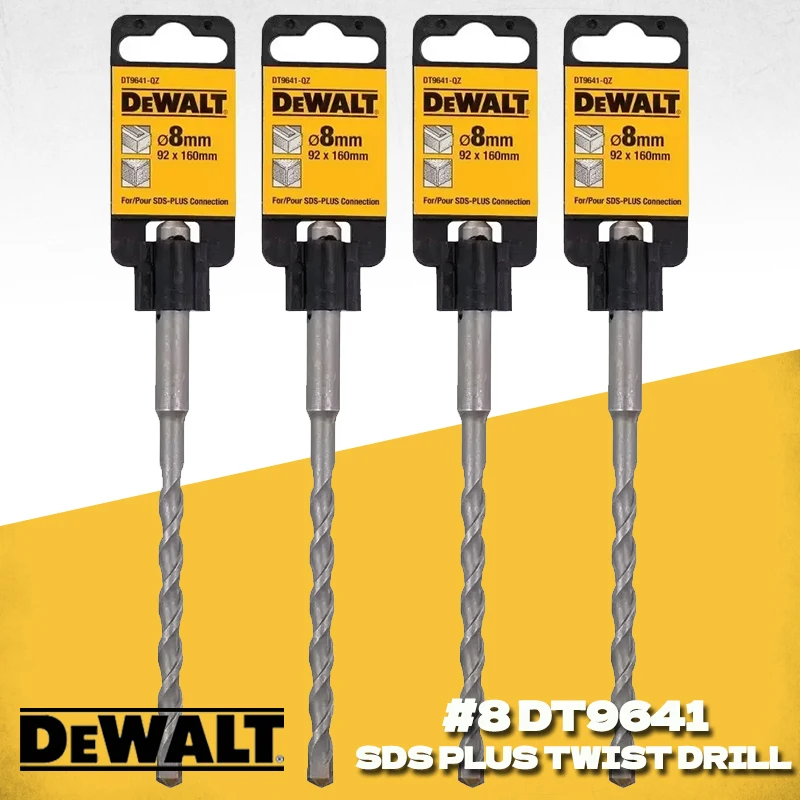 Experience professional-grade durability with this DEWALT DT9641 SDS Plus drill bit, designed for fast, efficient drilling into concrete, masonry, stone, and brickwork. The bit features an optimized carbide tip with two cutting edges for quick penetration, a hardened steel body for enhanced strength and longevity, and an optimized shank for secure grip and efficient power transfer. Available in sets of 1, 2, 3, 4, or 5 pieces, each bit is color-coded to match its set size, ensuring easy identification. Its robust construction and precision-engineered design make it an essential tool for demanding masonry and concrete drilling tasks, providing reliable performance every time.