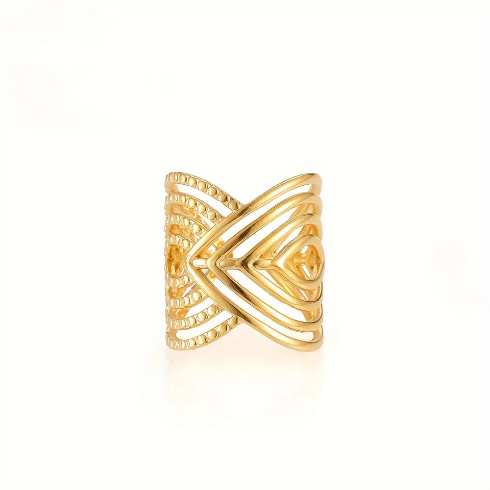 Elevate your style with this DGIDDK stainless steel ring featuring an irregular, geometric hollow design. Crafted with 18k gold plating, its unique open shape offers a modern, artistic touch suitable for any occasion—be it a party, wedding, or engagement. The classic, unisex design makes it a versatile statement piece that complements your personal aesthetic. Whether you’re looking to treat yourself or gift someone special, this fashion-forward ring combines elegance and originality to enhance your jewelry collection. Imagine yourself wearing this eye-catching accessory, turning heads and sharing your impeccable taste with confidence.