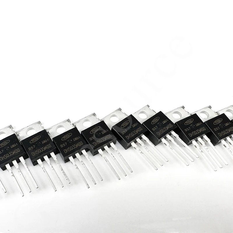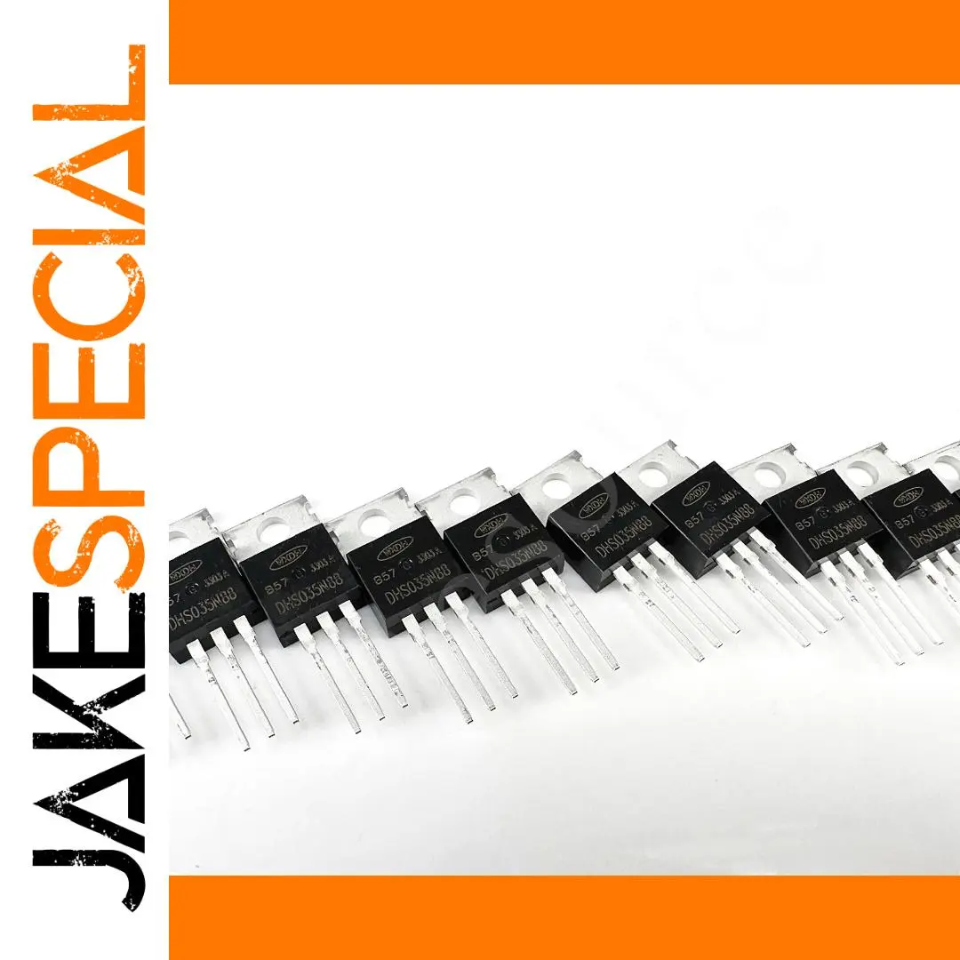 This set of 10 high-quality DHS035N88 N-channel MOSFETs in TO-220 packages is ideal for inverter control and high-current switching applications. Rated at 85V, these new components feature a sleek, black rectangular body with a matte finish, complemented by metallic leads and surface-mounted markings in gold or silver ink. Designed for power regulation and reliable performance, they offer a modern, technical aesthetic suitable for professional electronics projects. Trusted for their durability and precision, these transistors provide essential components for power management systems, ensuring efficient and stable operation in demanding circuit environments.