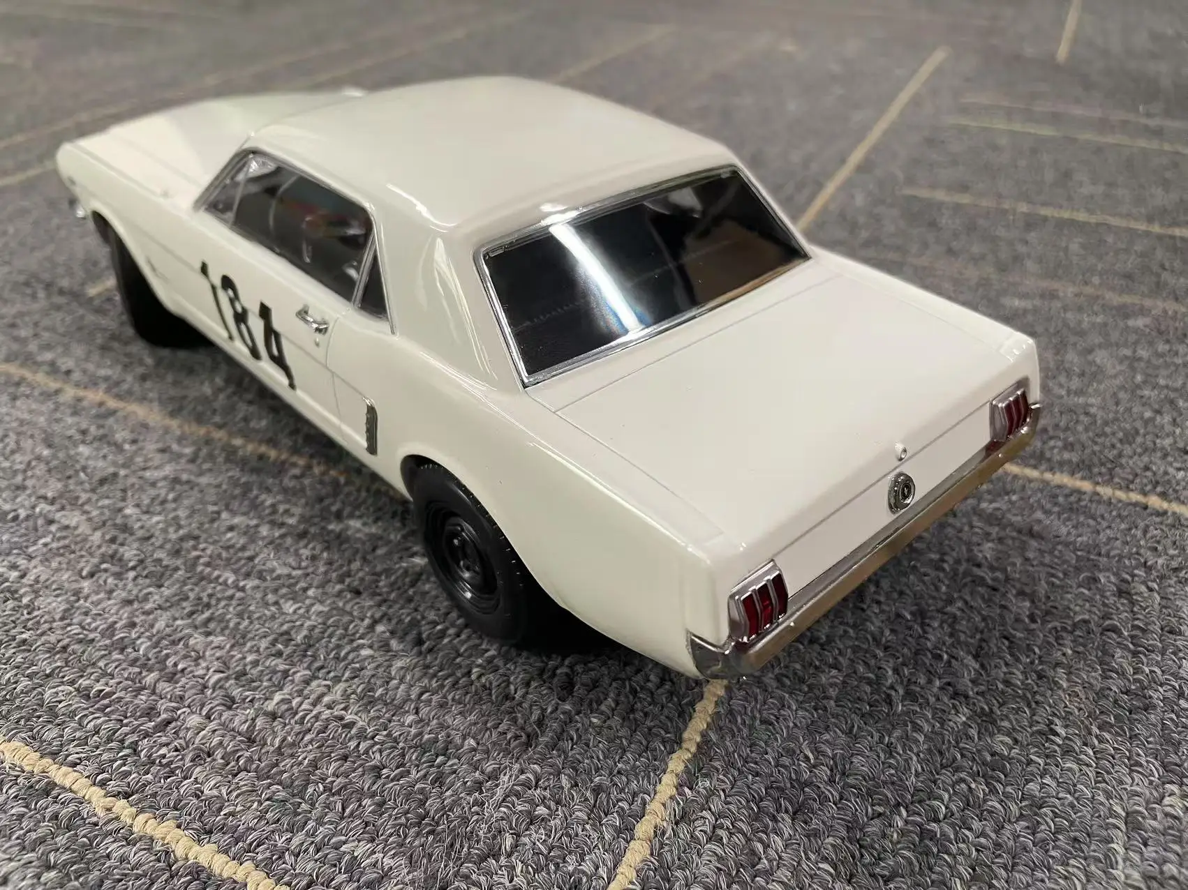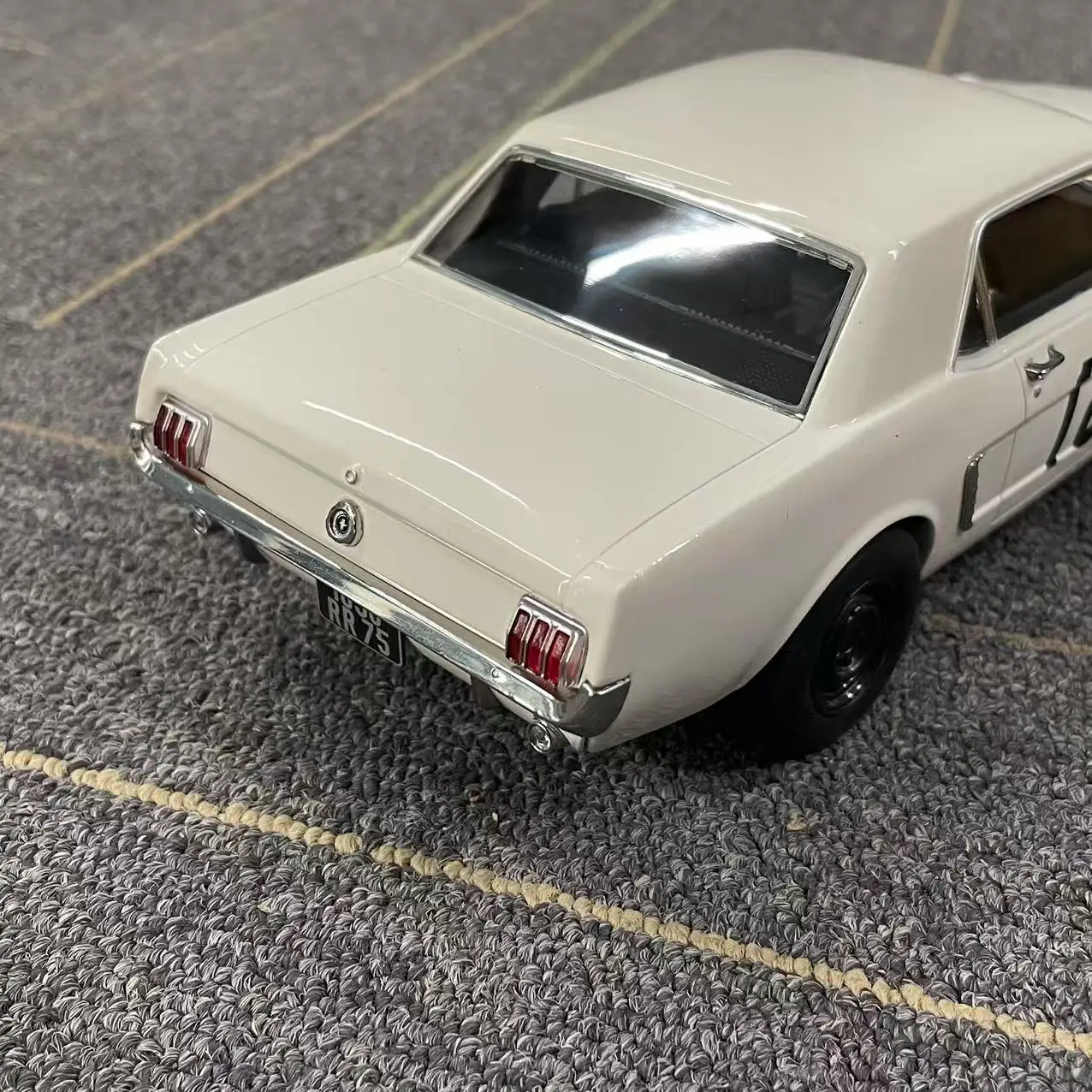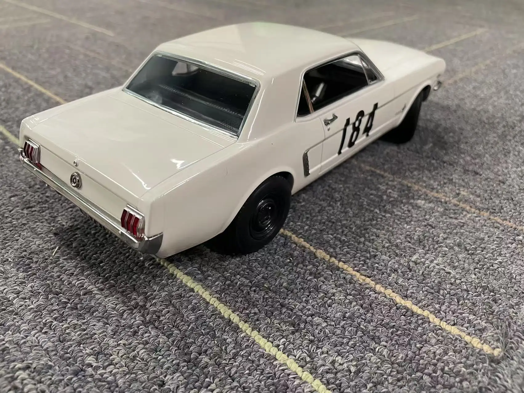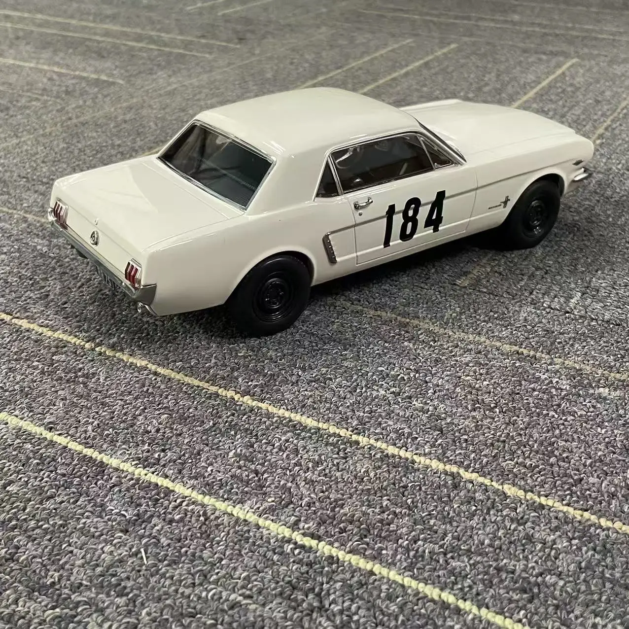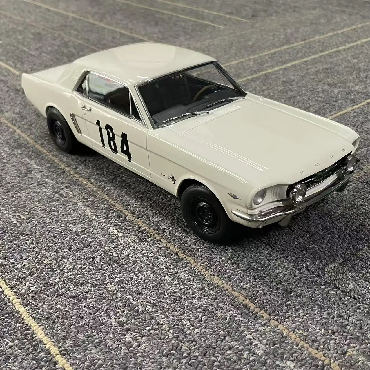 This stunning 1/18 scale die-cast model of the Ford Mustang, model number 184, captures the essence of vintage sports cars with its sleek white exterior and classic convertible design. Measuring approximately 26 cm, it features intricate details such as a shiny chrome grille with a Ford emblem, round headlights, and a delicately raised hood. The well-defined interior is complemented by contrasting brown or beige seats, while the black wheels enhance its sporty appearance. Crafted entirely from metal, this model operates as a static presentation piece, perfect for display and collection. Note that some models may exhibit slight defects in paint surfaces.