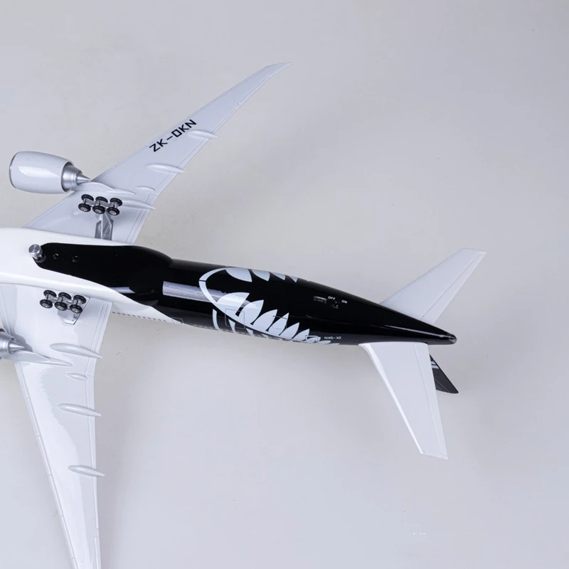 Experience the elegance and realism of this beautifully crafted die-cast model of the B777 Air New Zealand aircraft. Measuring approximately 47cm in length at a 1/157 scale, this model captures the aircraft's sleek fuselage and sophisticated styling. Crafted from alloy and resin, it features smooth, polished surfaces that highlight intricate details like the engine nacelles, wings, and tail fin. The model’s aerodynamic design and precise color contrasts—available in clean white with black accents or striking black and white livery—bring the aircraft to life. Perfect for aviation enthusiasts, collectors, or as a stunning display piece, this model elevates any collection with its impressive detail and modern aesthetic quality. Its removable wings and wheels facilitate easy assembly and maintenance.