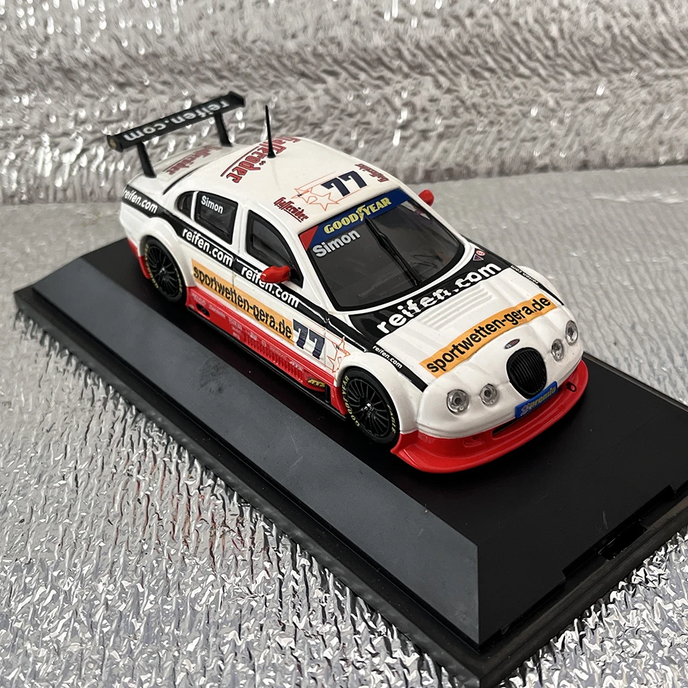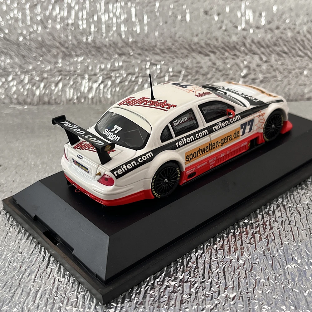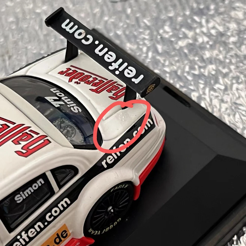 This meticulously crafted 1:43 scale die-cast alloy car model captures the sporty essence of a racing vehicle, featuring a predominantly white body adorned with colorful decals and sponsor logos for vibrant visual appeal. Designed with aerodynamic curves, subtle ridges, black-tinted windows, and a striking black rear wing with printed branding, it exudes realism and high performance. The model includes rotating wheels with treaded tires and a bright red front splitter for an eye-catching detail. Made from alloy, ABS, and rubber, it’s perfect for collectors, hobbies, or as a decorative gift. Despite minor rash surface imperfections, it offers authentic craftsmanship suitable for static display enthusiasts aged 14 and up.