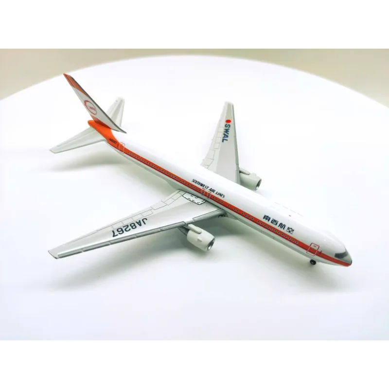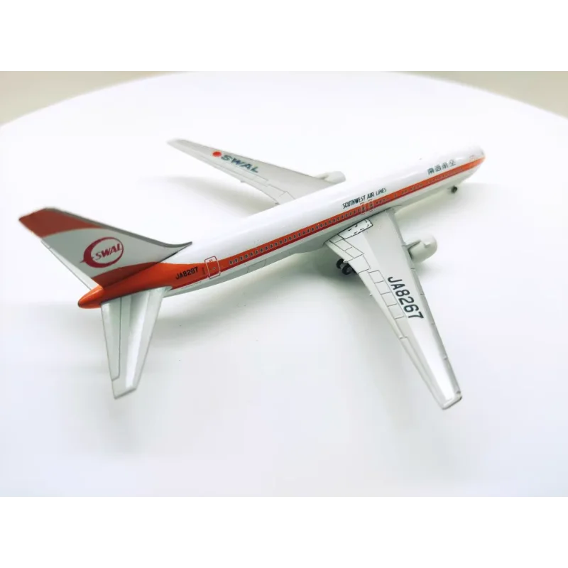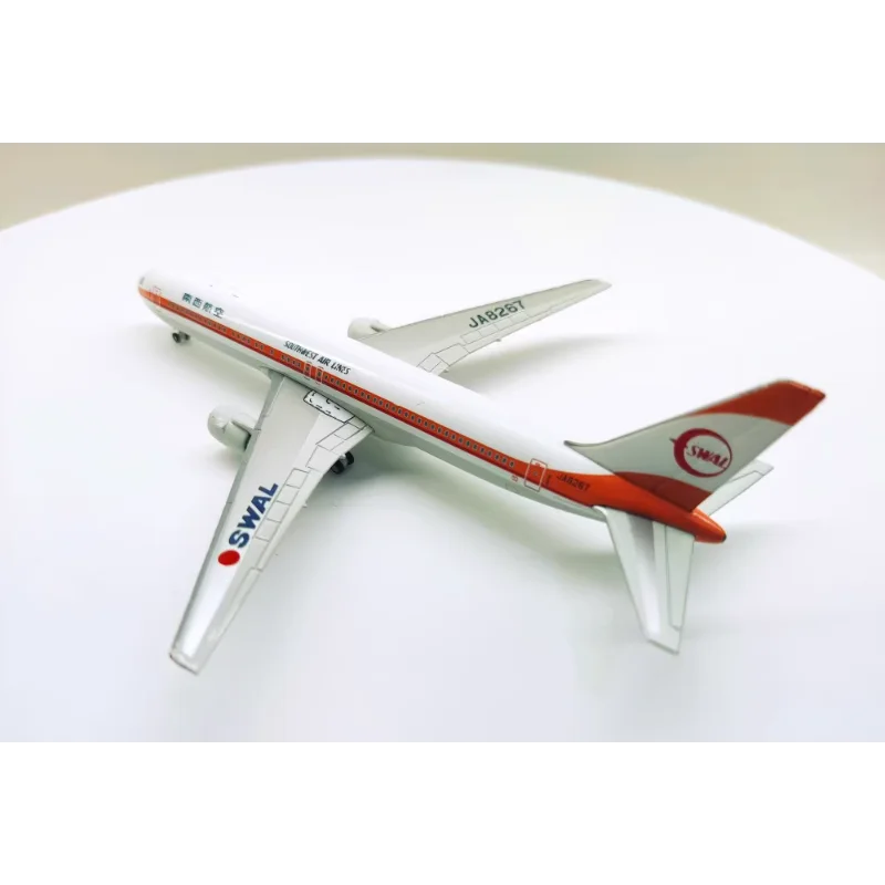 This exquisitely detailed diecast model of the Japan Airlines 767-300, registration number JA8267, is perfect for collectors and aviation enthusiasts alike. With its refined white body accentuated by a prominent red stripe, the design embodies the elegance of Japan Airlines. The model also features an eye-catching orange tail fin, reflecting the airline's branding, while intricate wing detailing and silver-finished engines enhance its realistic appearance. Crafted from durable alloys and plastics, this static model is designed for display rather than play. You can envision proudly showcasing this airplane in your collection, admiring its craftsmanship each day.
