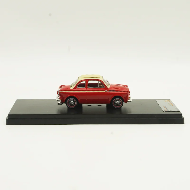 This exquisite diecast model of a vintage 500 sedan car is crafted at a 1/43 scale, measuring approximately 10 cm in length. The model showcases a striking red body with a cream-colored roof, enhanced by detailed chrome accents, functional rotating wheels, and small windows. Made from a durable combination of alloys and plastics, it serves perfectly as a collectible display or a decorative gift. With no electrical components or batteries required, this model is ideal for enthusiasts looking for an elegant piece to highlight their collection. Please note, this model is not intended for children.