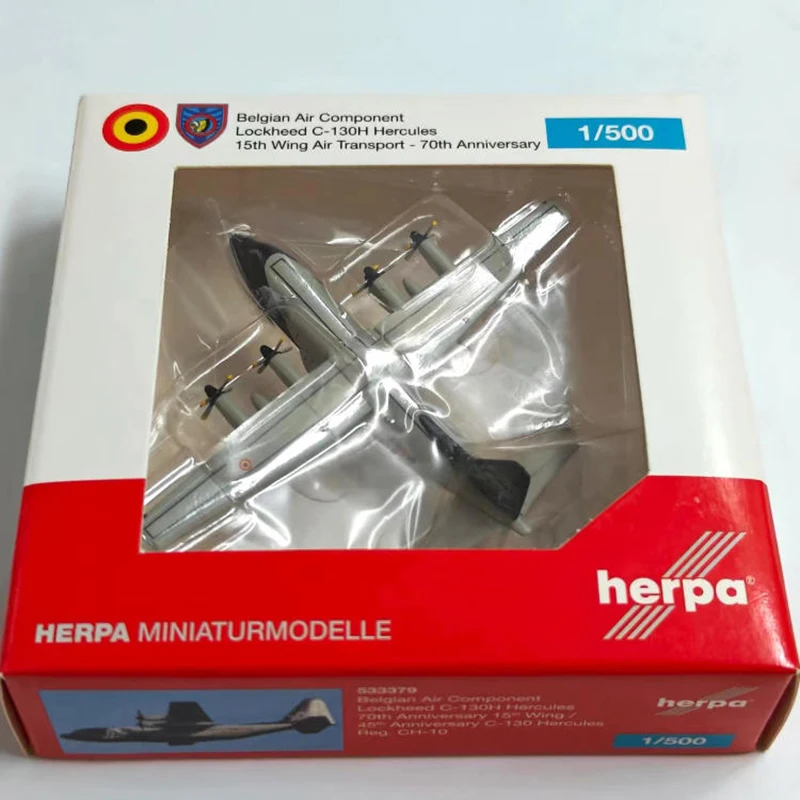 The Diecast 1/500 Herpa 533379 C-130H Alloy Aircraft Model is the perfect addition for any aviation collector or enthusiast. Crafted from a sturdy metal alloy, this model showcases meticulous attention to detail, reflecting the authentic characteristics of a C-130H aircraft. The light gray body, complemented by sleek dark gray accents and striking black and white tail markings, creates an impressive visual appeal. Ideal for display or gifting, this model serves as a stunning static decoration that captures the essence of military aviation.