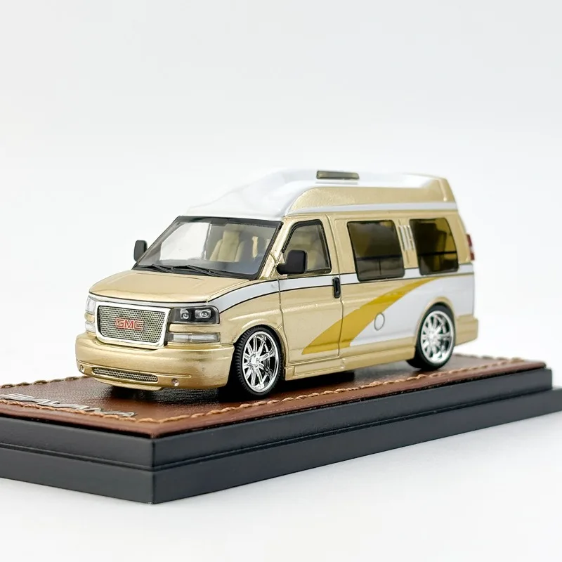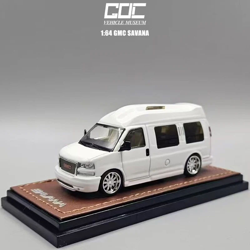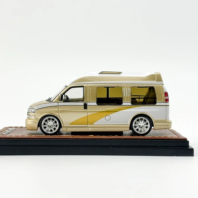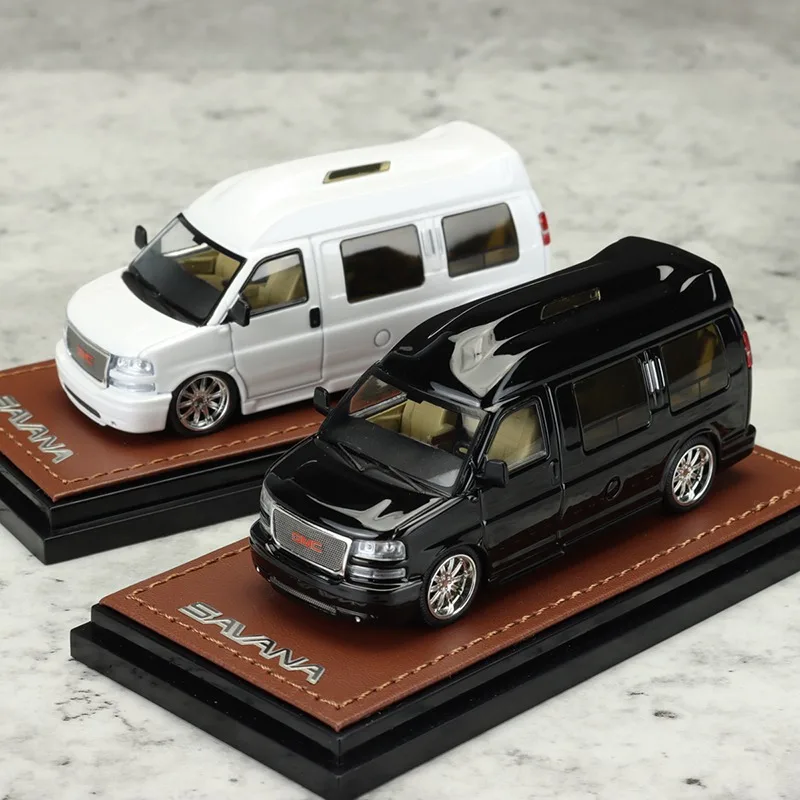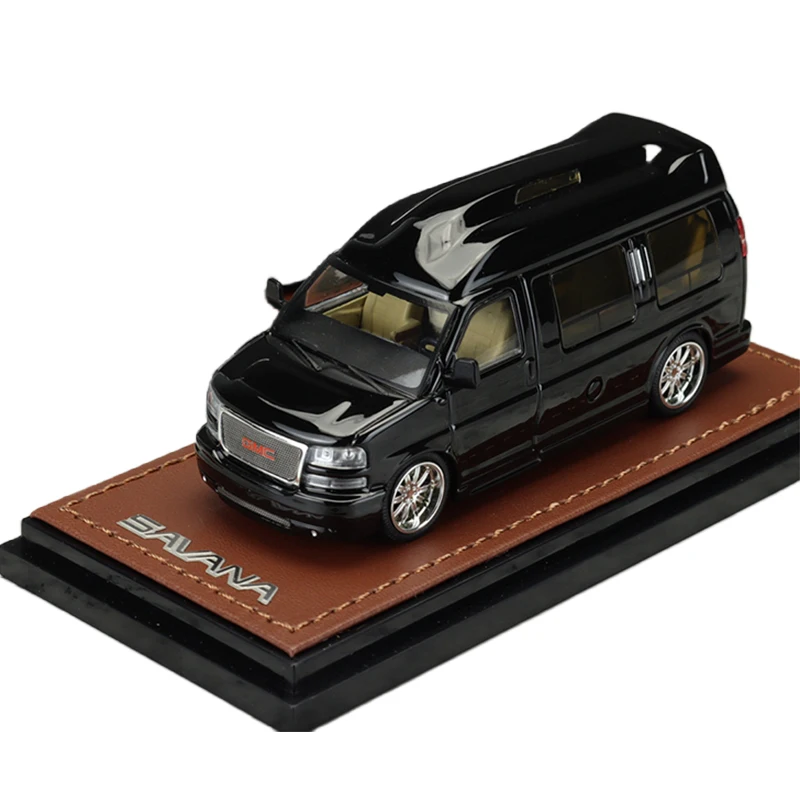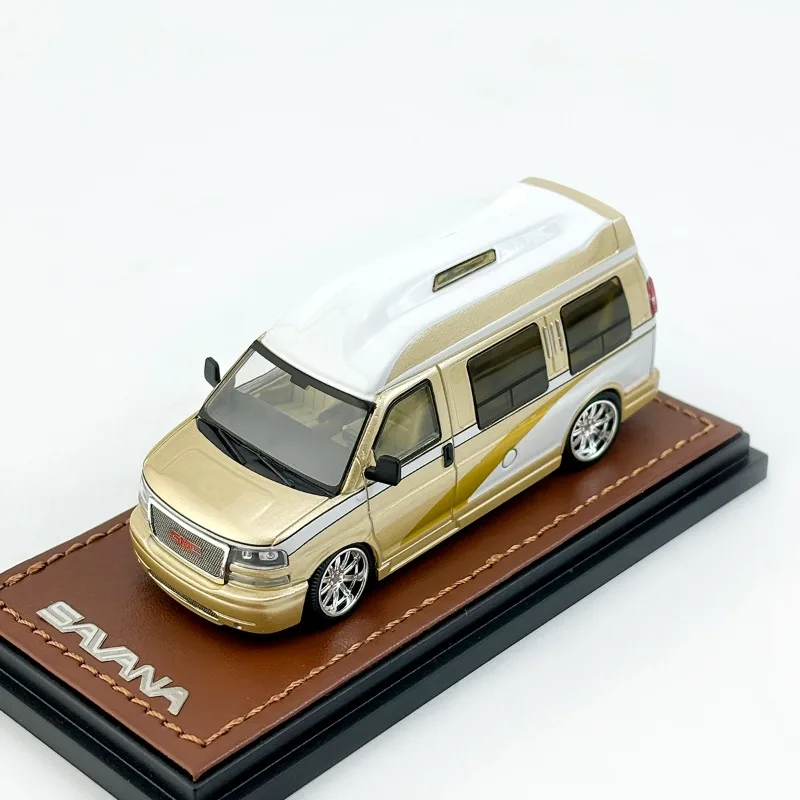 Discover the stunning Diecast 1/64 Scale GMC Savana model cars, showcasing a collection of four designs in captivating colors: metallic gold and cream, white and light blue with police graphics, pristine white, and glossy black. Each model features intricate details, made from durable metal and plastic, and requires no batteries. Perfect for display, collection, or as a thoughtful gift, these models come mounted on a sturdy base with a leather-like texture, embossed with “SAVANA.” Reinforced for transport protection, this set truly captures the essence of the GMC Savana, making it a must-have for enthusiast collectors.