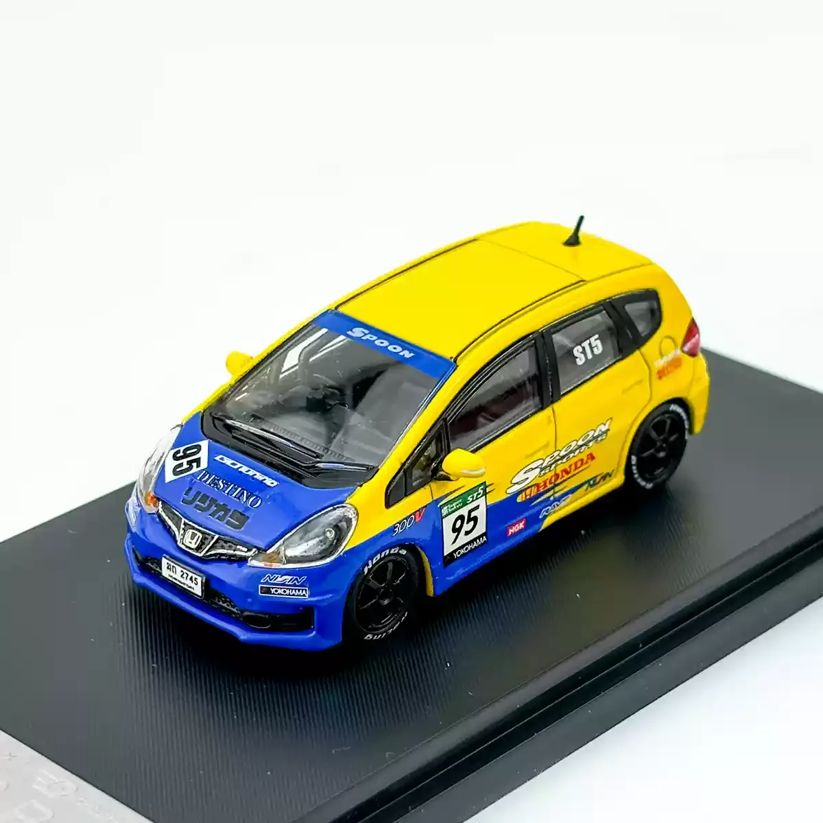 Experience the thrill of automotive collectibles with the Diecast 1/64 Scale Honda Fit 2 GE8 RS SPOON model car. Crafted from durable metal and plastic, this vibrant set features three unique designs: a blue car with yellow accents and racing decals marked with “95,” a bright solid yellow model, and a clean polished white variant. Each car is displayed on a sleek black base with engraved labels, perfect for showcasing your collection. Ideal for decor, gifts, or as a treasured collectible, this model does not require batteries and is suitable for those aged 14 and up. Please note, minor defects may be present due to the nature of model coatings.