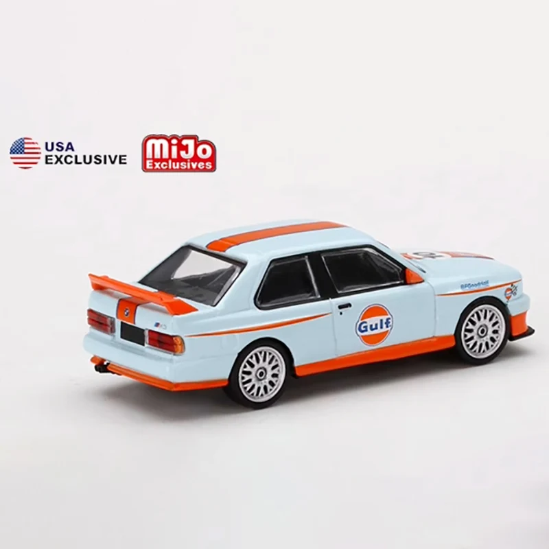 This exquisite diecast model car, representing the iconic M3 E30, is a must-have for seasoned collectors. Drenched in a stunning light blue finish with vivid orange and white graphics, this model embodies both elegance and a sporty aesthetic. Crafted with meticulous attention to detail, it features sharply defined body lines, realistic window frames, and striking white wheels with orange accents. The durable alloy and plastic construction ensures this model remains a cherished piece in your collection. Picture it nestled among your display, drawing admiration for its fine craftsmanship. Elevate your collector's shelf with this remarkable piece that transforms admiration into ownership.