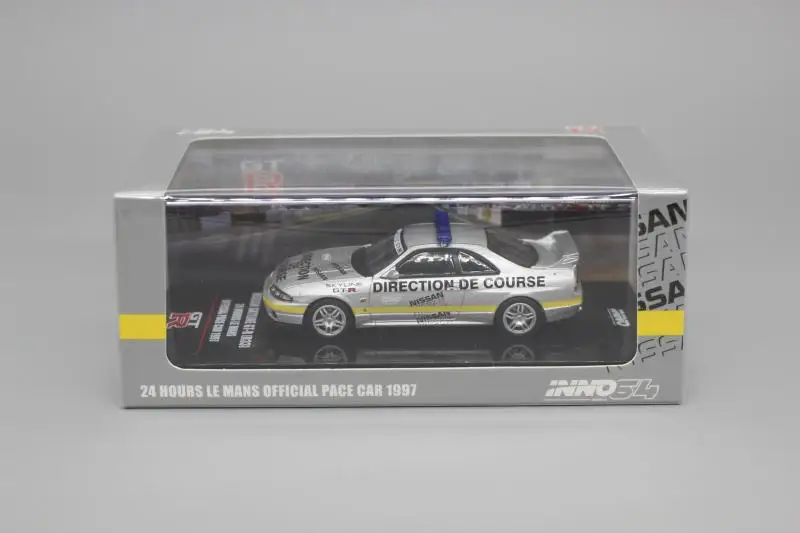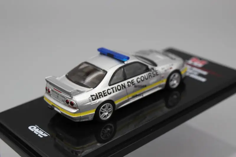 The Diecast 1/64 Scale Nissan Skyline R33 GT-R Sports Car Model is a meticulously crafted replica combining metal and plastic materials. Featuring a striking white body with an aqua accent, along with a silver model displaying “DIRECTION DE COURSE” and a blue light bar, these models capture the essence of racing. With a low profile and large black wheels, they exude a sporty presence. This non-electric collector’s item, perfect for display or as a gift, is designed for ages 14 and up, and comes in an original color box. Keep away from fire for safety.