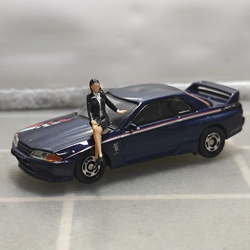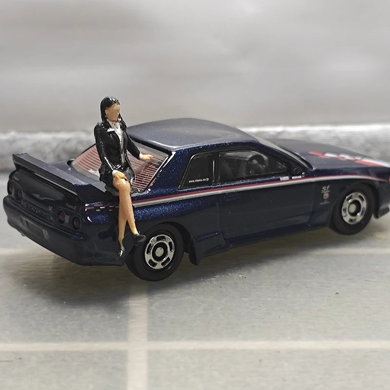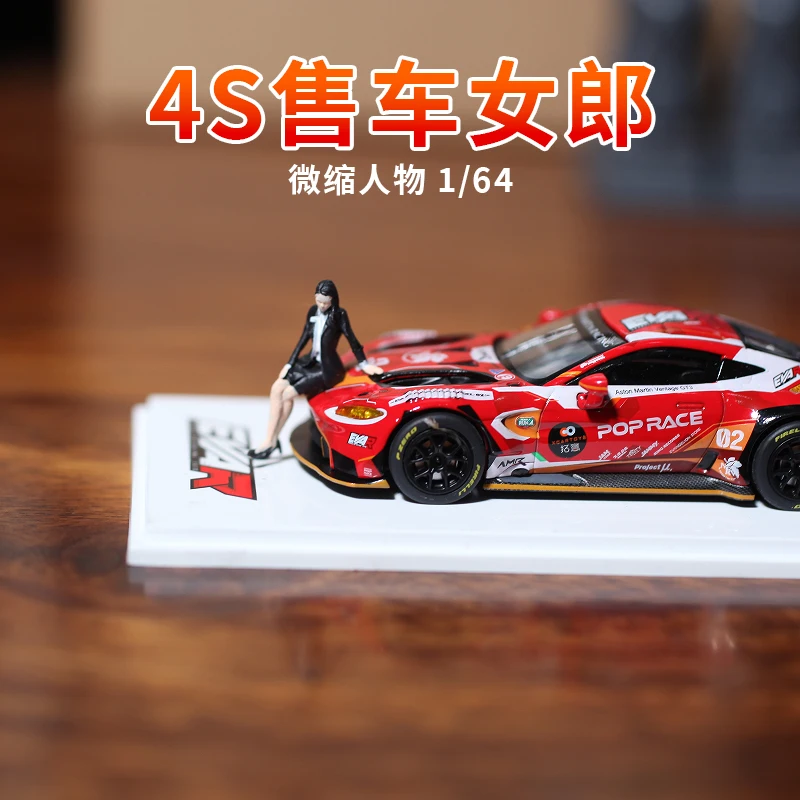 Experience the intricate beauty of this stunning Diecast 1/64 Scale Model Car, expertly crafted to captivate any collector or enthusiast. Featuring a vibrant red finish, this racing model is adorned with striking racing stripes and sponsor logos, showcasing the attention to detail that elevates it above ordinary collectibles. Resting on a sleek white display base, the car is accompanied by finely detailed miniature figures of women in formal black business attire, adding a dynamic touch to its presentation. Each figure is thoughtfully designed, exuding realism with distinct hairstyles and poses, perfect for enhancing the model scene. This product promises to be a dazzling centerpiece in your collection.
