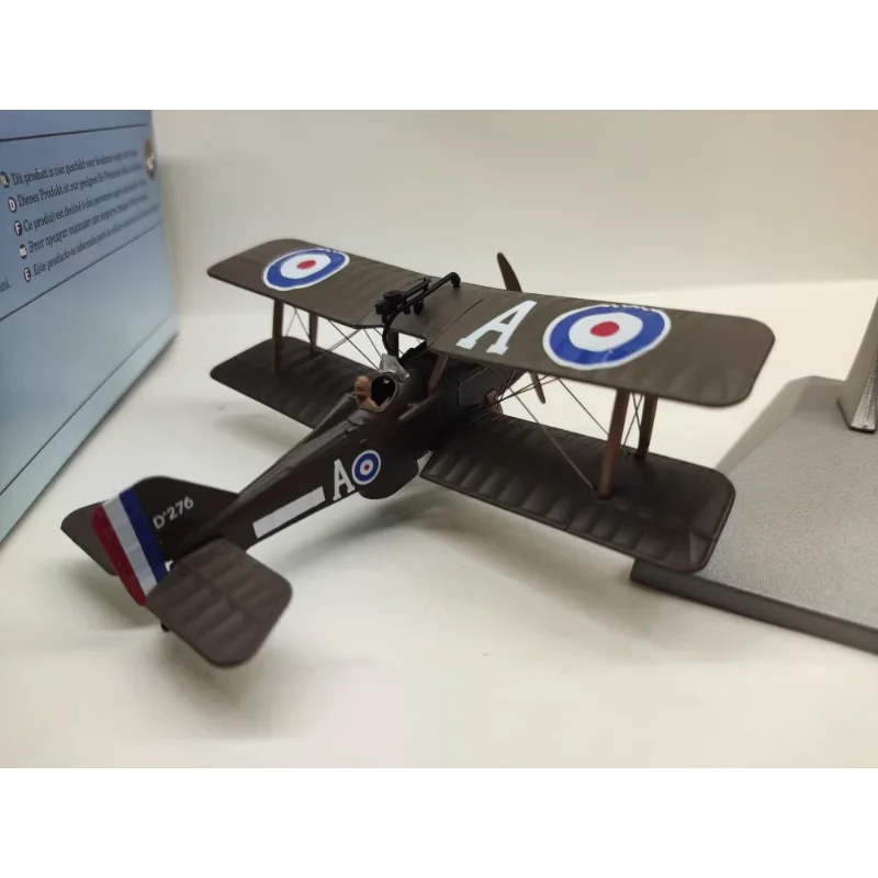 The Diecast 1/72 Scale British SE.5A Cortes single-seat biplane is a meticulously crafted collectible model, made from alloys and plastics. This static model showcases a detailed light brown body with a historical camouflage pattern, complemented by vibrant roundel designs in blue and red, reflecting British military insignia. The prominent propeller, designed to resemble wood, and the rigging wires enhance its authenticity. A pilot figure in classic uniform adds to the charm. With no moving parts or sound functions, this high-quality, historically accurate model is perfect for collectors, radiating nostalgia and craftsmanship in every detail.