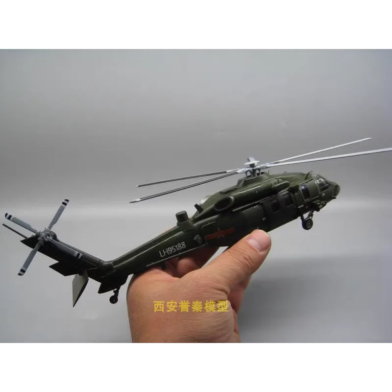 This Diecast BLMUSA 1/72 Scale Chinese Army Aviation Equipment Z-20 Attack Helicopter is a meticulously crafted collectible that brings military aviation to life. With its military green finish and smooth metallic body, this model captures the true essence of an actual Z-20 helicopter. The intricately detailed cockpit features transparent windshield panels showing the interior, while the sharply defined rotor blades in metallic silver add a striking contrast to the fuselage. The robust landing gear ensures stable display, while the upward-angled tail showcases horizontal stabilizers that highlight the model's authenticity. A perfect addition to any collection, this helicopter is sure to impress enthusiasts and collectors alike.
