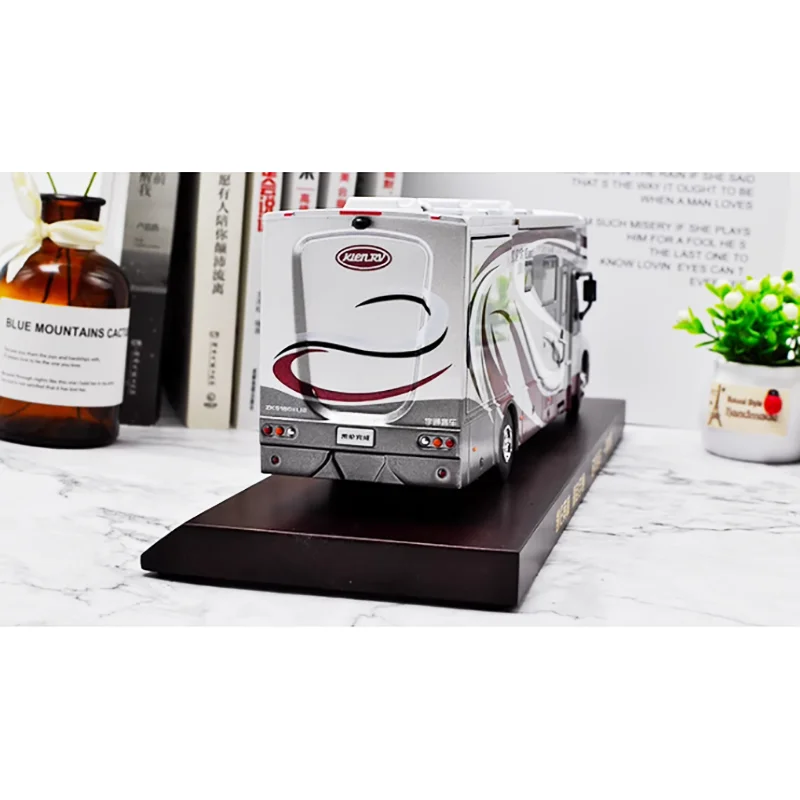This meticulously crafted diecast model of a multi-functional RV in 1:42 scale measures approximately 28 cm long, 7.5 cm wide, and 7 cm high, made from durable alloy. The sleek, polished design features a predominantly white exterior accented with flowing maroon and gray graphic stripes, complemented by dark-tinted side windows that add contrast and realism. The detailed front cab includes a grille, headlights, and side mirrors for lifelike authenticity. Top-mounted white vents enhance the model’s authenticity, making it a perfect collectible or decorative piece for adult enthusiasts. This static display toy is non-electric, intended solely for collection, with no batteries or electronic parts, emphasizing fine craftsmanship and modern aesthetic appeal.