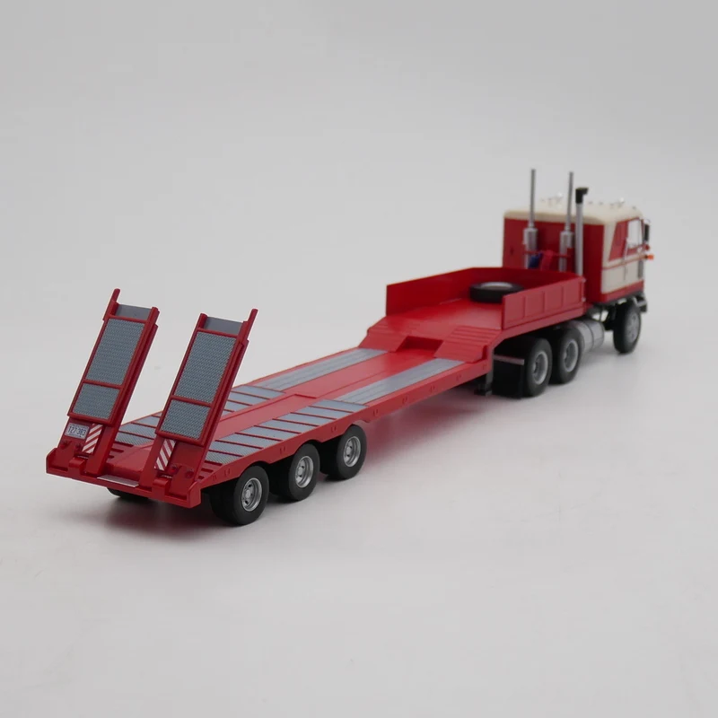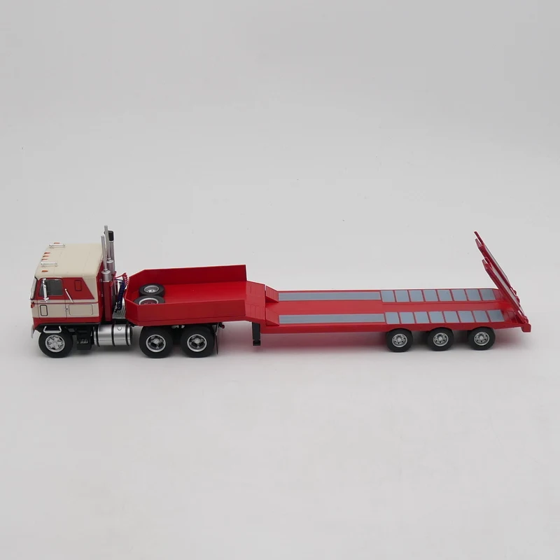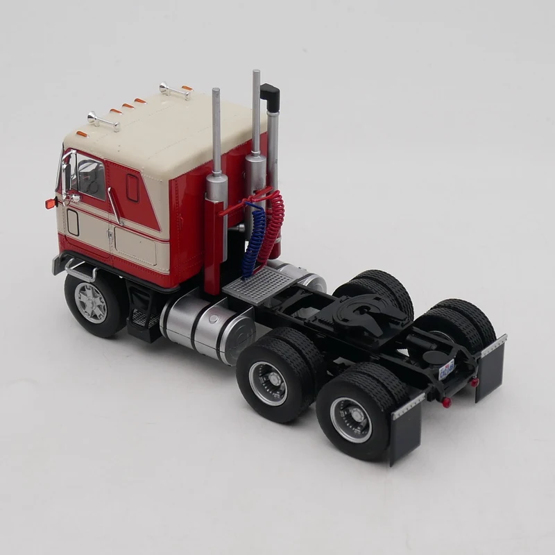 Experience the nostalgia of classic trucking with this Diecast 1:43 Scale Ixo GMC Astro General Jimxi Heavy Flathead Trailer model. Crafted from durable metal alloys and plastics, it showcases meticulous details, including a striking bright red truck cab, complemented by grey detailing and a silver front bumper. The attached flatbed trailer enhances its charm, featuring various small windows outlined in red. While the model does not have any moving parts or electrical features, its glossy finish and impressive 42 cm size make it a captivating display piece. Ideal for collectors, this exquisite model brings a touch of vintage flair to your collection.