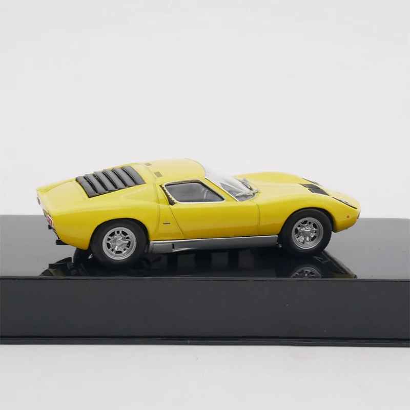 Experience the elegance and power of the Diecast Original 1:43 Scale Miura Simulation Alloy Car Model. This exquisite static display piece showcases the stunning, bright yellow glossy finish, capturing light perfectly to highlight its sleek supercar design. The model features elegantly aggressive details such as round headlights, prominent air intakes, and a minimalistic black grille. Crafted from durable alloy, this meticulous piece includes a detailed interior—visible through clear plastic windows. Perfect for gifting, collection, or decorative purposes, it epitomizes high-quality craftsmanship with a sense of motion that attracts enthusiasts and collectors alike.