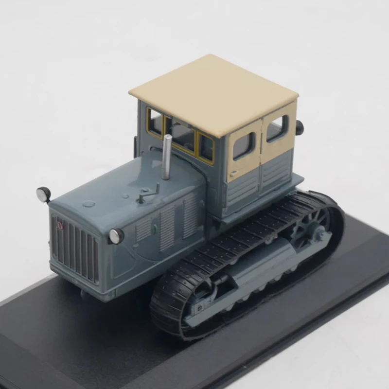 The Diecast 1:43 Scale IXO 80 Soviet Tractor is a stunning model that captures the robust spirit of this historical machinery. Finished in muted gray with a cream-colored cabin roof, it exudes authenticity with its intricate detailing, including a slatted grille and defined panel lines signifying its metal construction. This exquisite model boasts a square-shaped cabin, large bright yellow outlined windows, and is mounted on textured tracks that replicate real tractor functionality. Ideal for display, you'll appreciate the two round headlamps adding to its charm. Constructed from durable diecast metal alloy, rubber, and ABS, this model is truly a collector’s treasure.