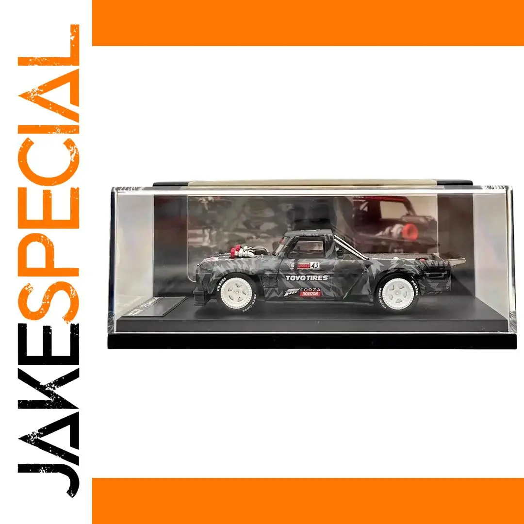 Immerse yourself in the thrill of racing with this meticulously crafted 1:64 scale diecast model of the Hoonitruck, inspired by Ken Block’s 1977 F-150 Pick Up. Measuring 3.3″ in length, 1.4″ in width, and 1 inch in height, it features a sleek black body with a matte or semi-gloss finish, accented by racing graphics, camouflage patterns, and detailed sponsor decals, including the number 43 and “TOYO TIRES.” The contrasting light beige roof adds visual flair, while the five-spoke white wheels with textured tires enhance its sporty appearance. Crafted from metal and plastic, this non-electric model is perfect for collectors and enthusiasts aged 14+, with functional or detailed doors and hood, making it a striking display piece or gift.